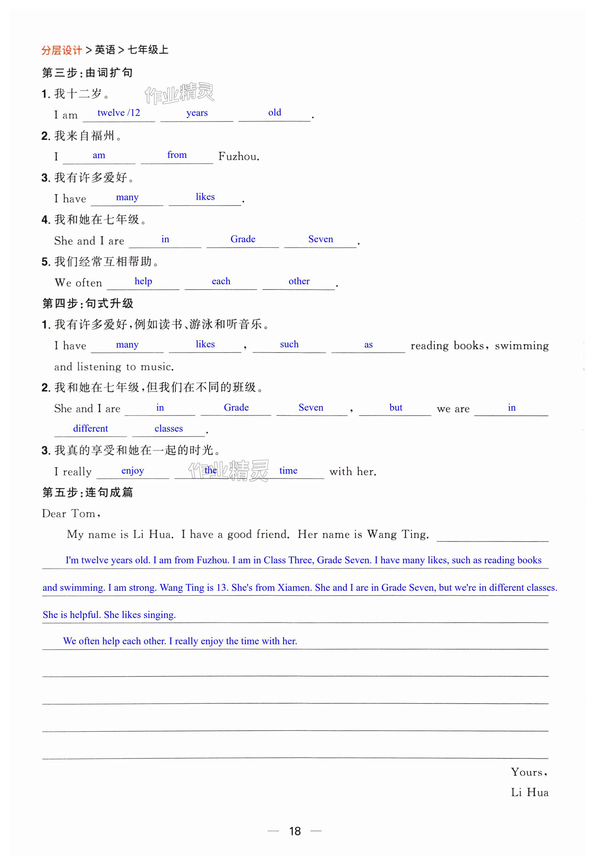 2024年阳光同学分层设计七年级英语上册人教版福建专版