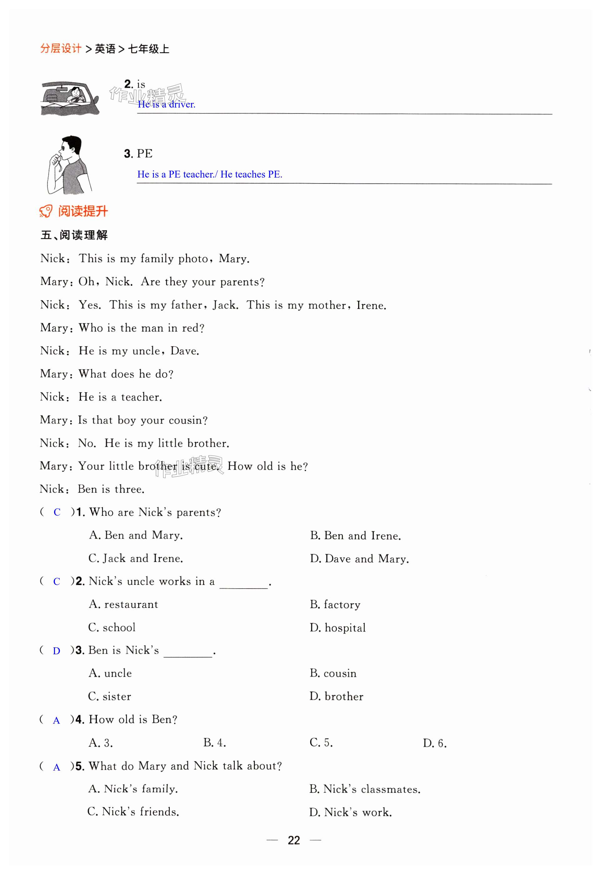 注:目前有些书本章节名称可能整理的还不是很完善,但都是按照顺序排列的,请同学们按照顺序仔细查找。练习册 2024年阳光同学分层设计七年级英语上册人教版福建专版 答案主要是用来给同学们做完题方便对答案用的,请勿直接抄袭。