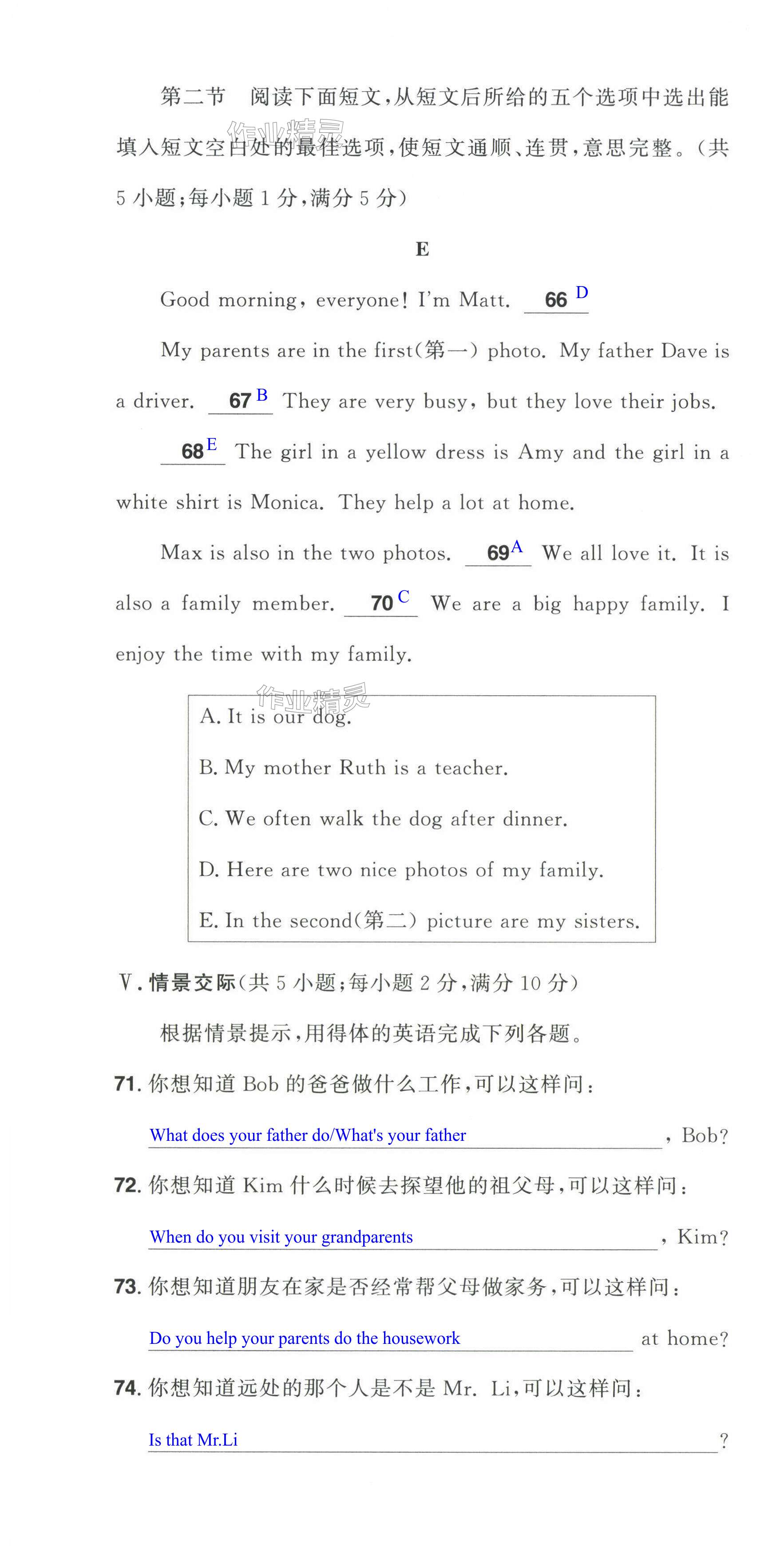 注:目前有些书本章节名称可能整理的还不是很完善,但都是按照顺序排列的,请同学们按照顺序仔细查找。练习册 2024年阳光同学分层设计七年级英语上册人教版福建专版 答案主要是用来给同学们做完题方便对答案用的,请勿直接抄袭。