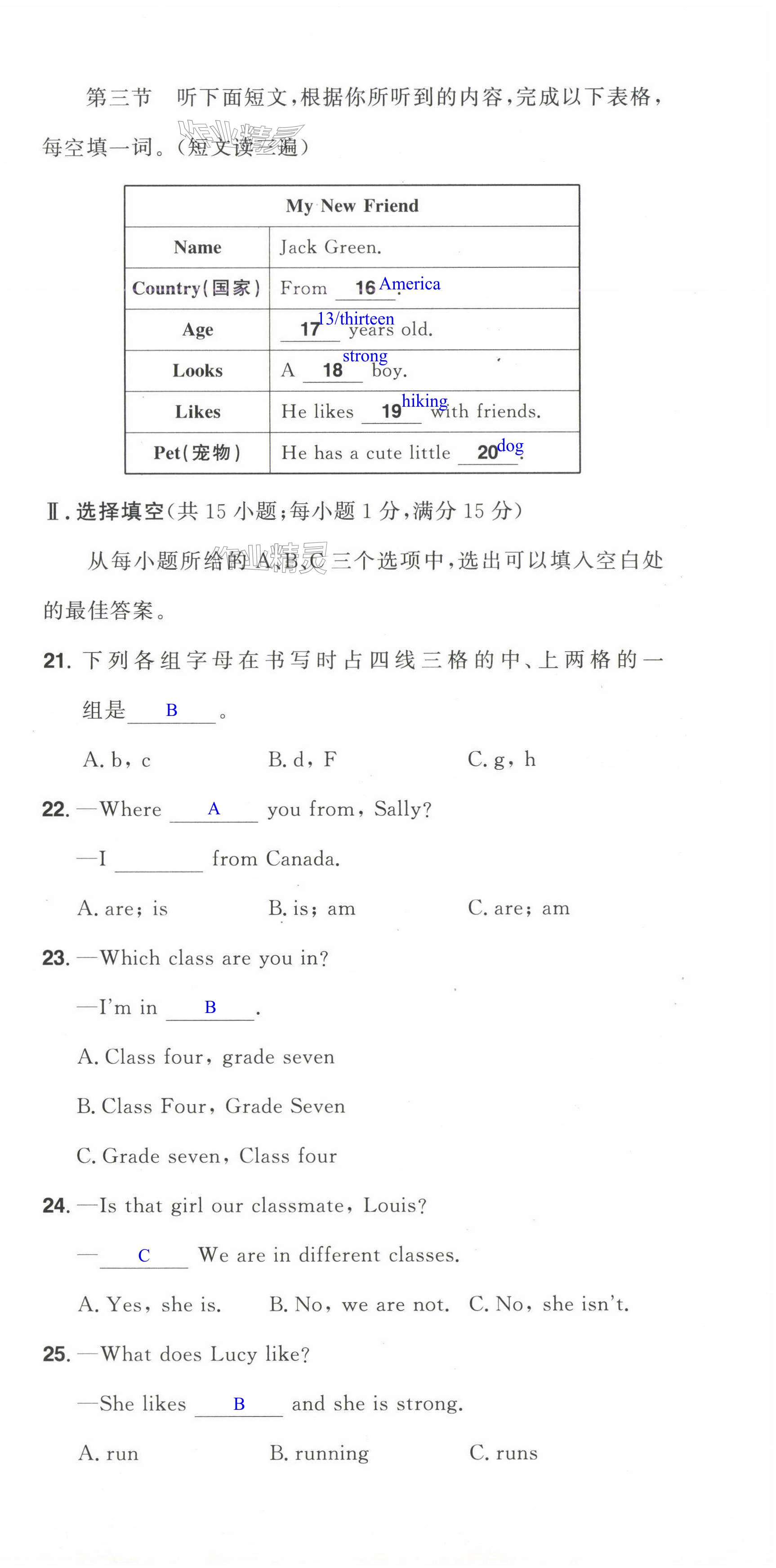 注:目前有些书本章节名称可能整理的还不是很完善,但都是按照顺序排列的,请同学们按照顺序仔细查找。练习册 2024年阳光同学分层设计七年级英语上册人教版福建专版 答案主要是用来给同学们做完题方便对答案用的,请勿直接抄袭。