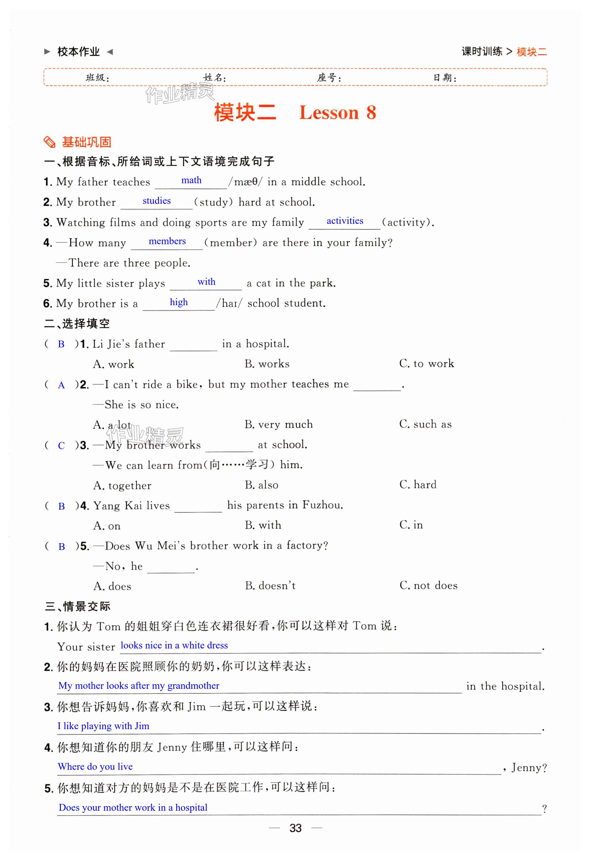 注:目前有些书本章节名称可能整理的还不是很完善,但都是按照顺序排列的,请同学们按照顺序仔细查找。练习册 2024年阳光同学分层设计七年级英语上册人教版福建专版 答案主要是用来给同学们做完题方便对答案用的,请勿直接抄袭。
