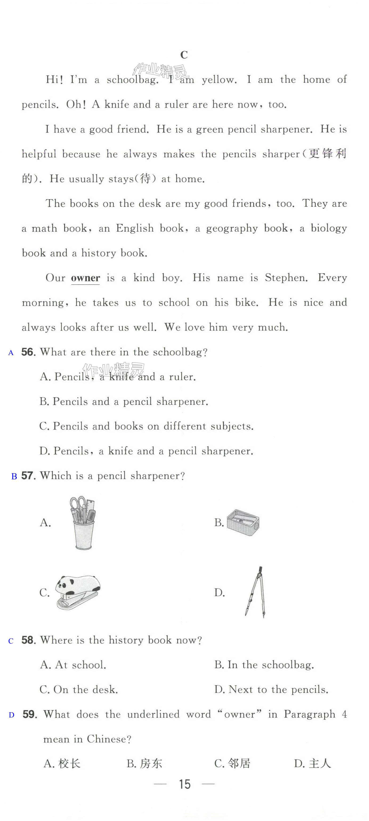 注:目前有些书本章节名称可能整理的还不是很完善,但都是按照顺序排列的,请同学们按照顺序仔细查找。练习册 2024年阳光同学分层设计七年级英语上册人教版福建专版 答案主要是用来给同学们做完题方便对答案用的,请勿直接抄袭。