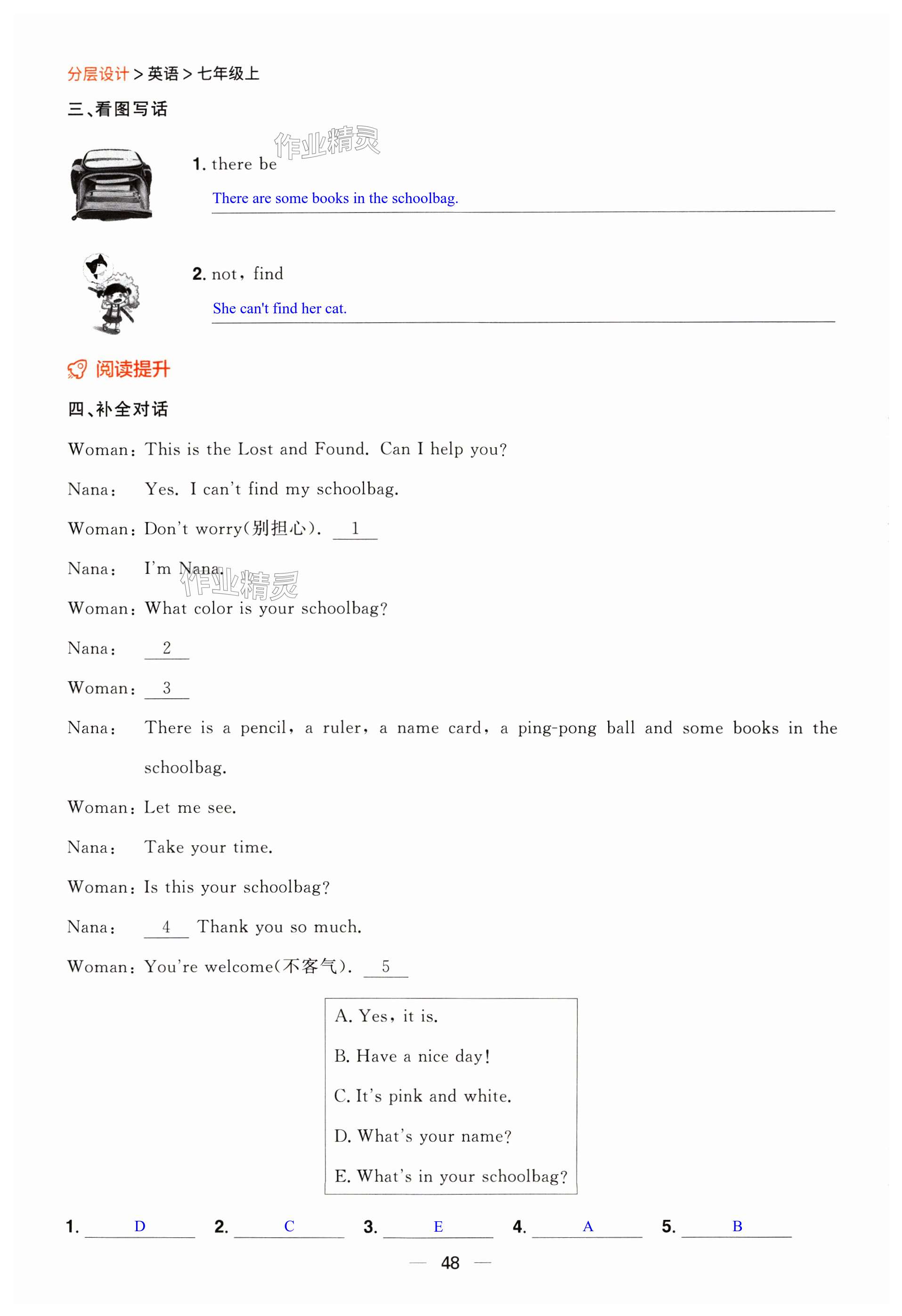 注:目前有些书本章节名称可能整理的还不是很完善,但都是按照顺序排列的,请同学们按照顺序仔细查找。练习册 2024年阳光同学分层设计七年级英语上册人教版福建专版 答案主要是用来给同学们做完题方便对答案用的,请勿直接抄袭。