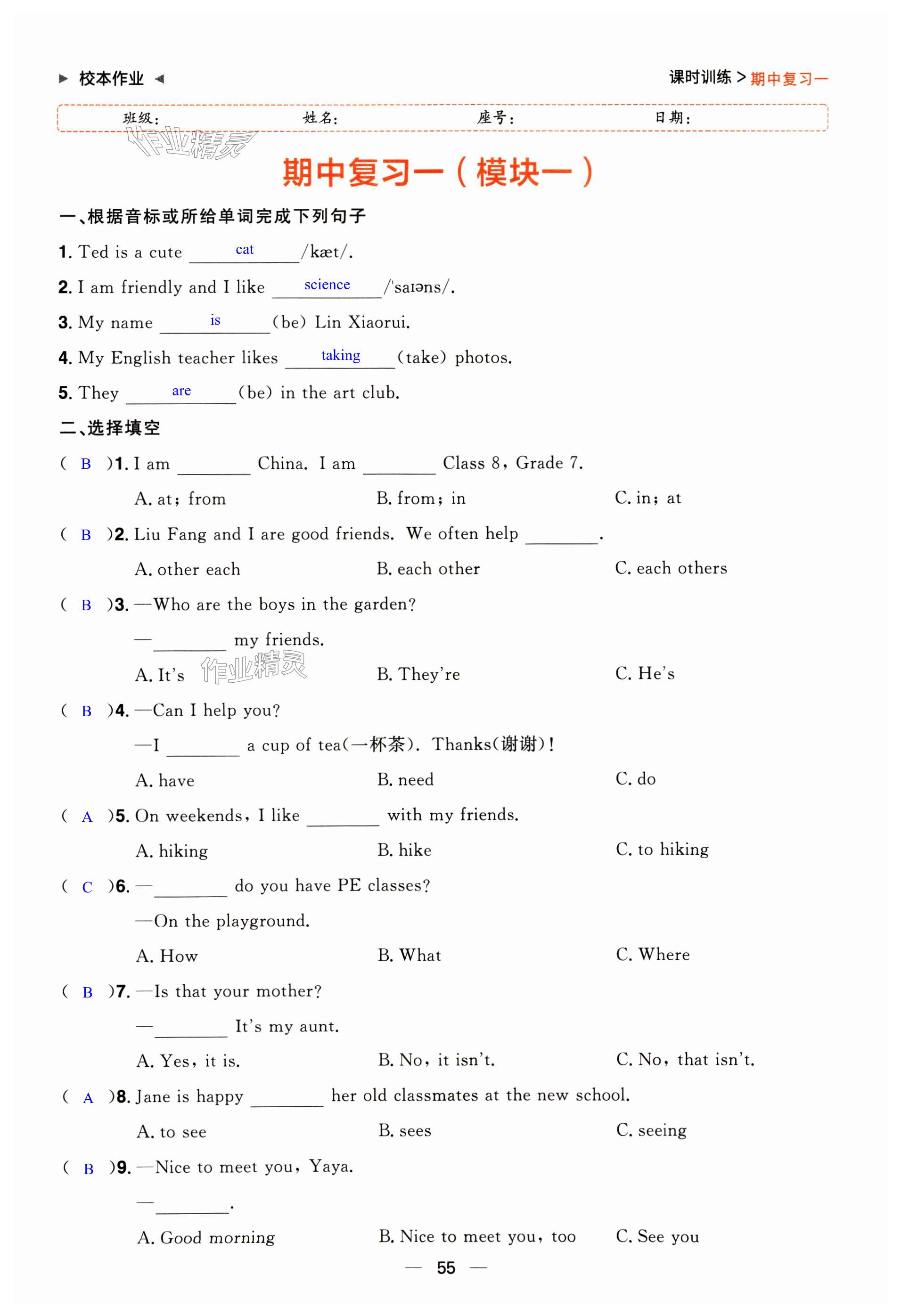 注:目前有些书本章节名称可能整理的还不是很完善,但都是按照顺序排列的,请同学们按照顺序仔细查找。练习册 2024年阳光同学分层设计七年级英语上册人教版福建专版 答案主要是用来给同学们做完题方便对答案用的,请勿直接抄袭。