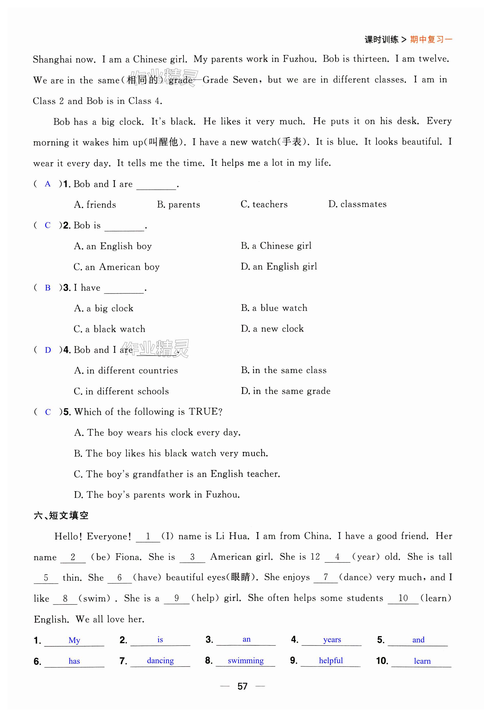 注:目前有些书本章节名称可能整理的还不是很完善,但都是按照顺序排列的,请同学们按照顺序仔细查找。练习册 2024年阳光同学分层设计七年级英语上册人教版福建专版 答案主要是用来给同学们做完题方便对答案用的,请勿直接抄袭。