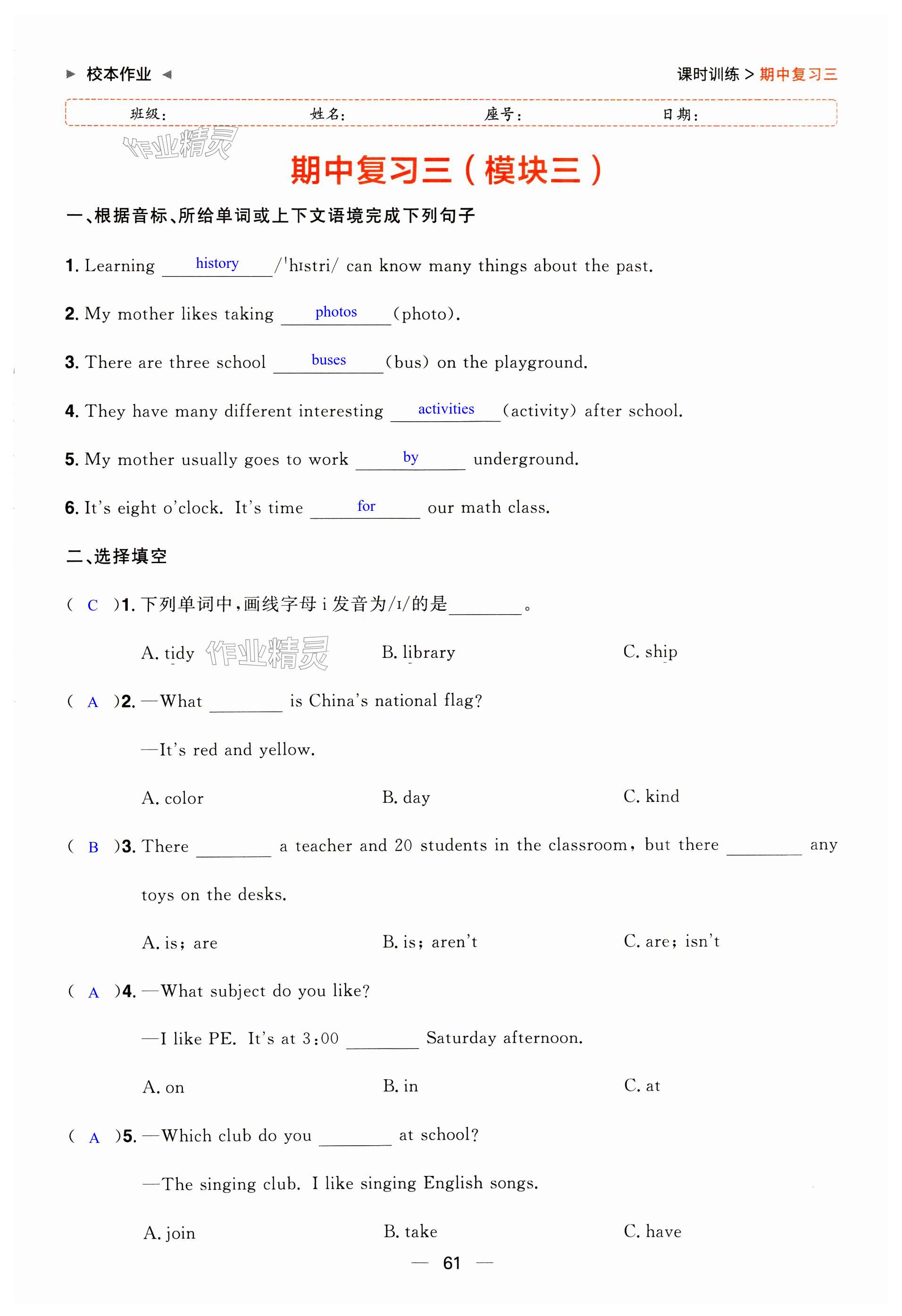 注:目前有些书本章节名称可能整理的还不是很完善,但都是按照顺序排列的,请同学们按照顺序仔细查找。练习册 2024年阳光同学分层设计七年级英语上册人教版福建专版 答案主要是用来给同学们做完题方便对答案用的,请勿直接抄袭。