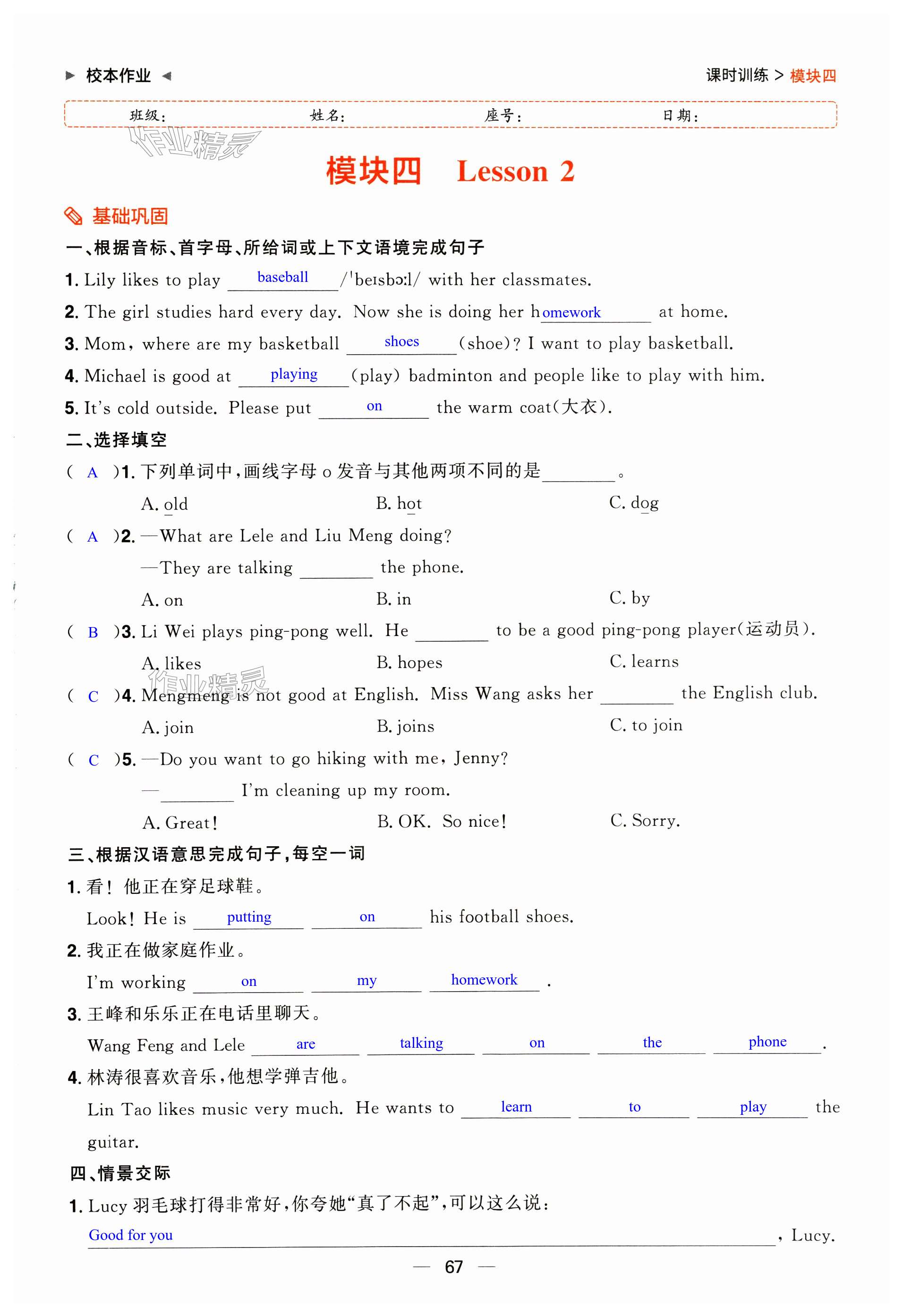注:目前有些书本章节名称可能整理的还不是很完善,但都是按照顺序排列的,请同学们按照顺序仔细查找。练习册 2024年阳光同学分层设计七年级英语上册人教版福建专版 答案主要是用来给同学们做完题方便对答案用的,请勿直接抄袭。
