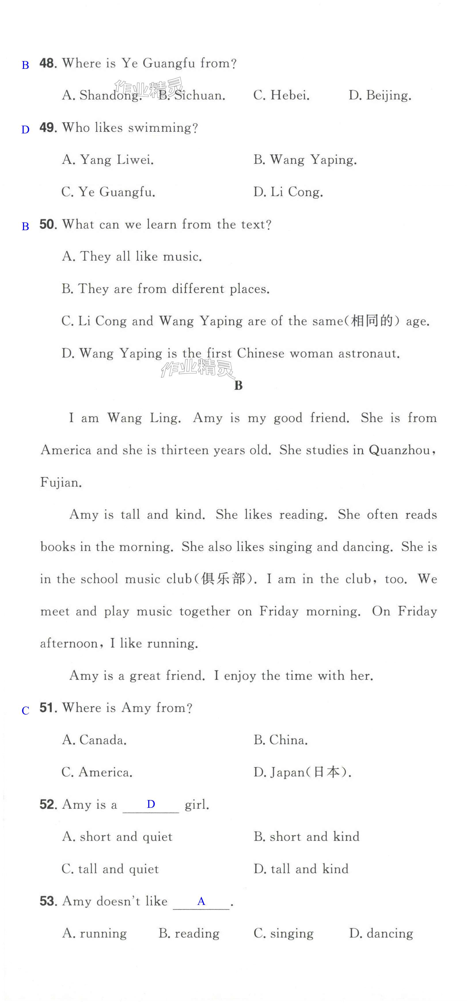 注:目前有些书本章节名称可能整理的还不是很完善,但都是按照顺序排列的,请同学们按照顺序仔细查找。练习册 2024年阳光同学分层设计七年级英语上册人教版福建专版 答案主要是用来给同学们做完题方便对答案用的,请勿直接抄袭。