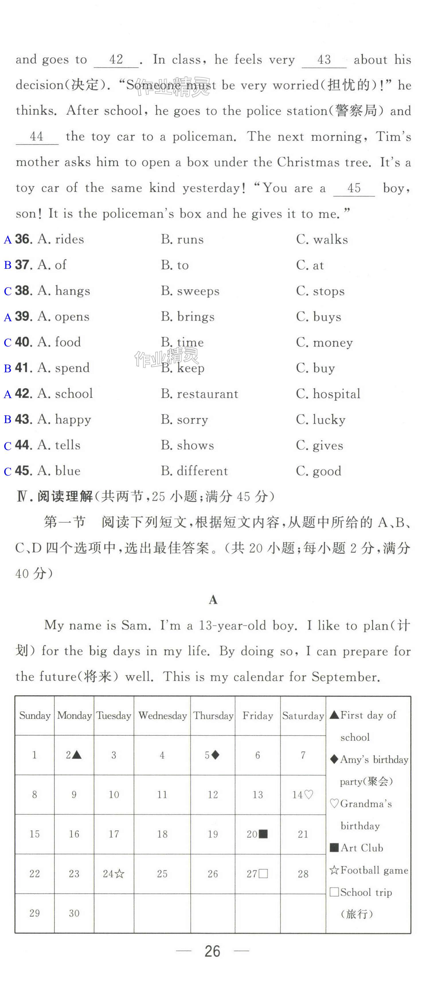 注:目前有些书本章节名称可能整理的还不是很完善,但都是按照顺序排列的,请同学们按照顺序仔细查找。练习册 2024年阳光同学分层设计七年级英语上册人教版福建专版 答案主要是用来给同学们做完题方便对答案用的,请勿直接抄袭。