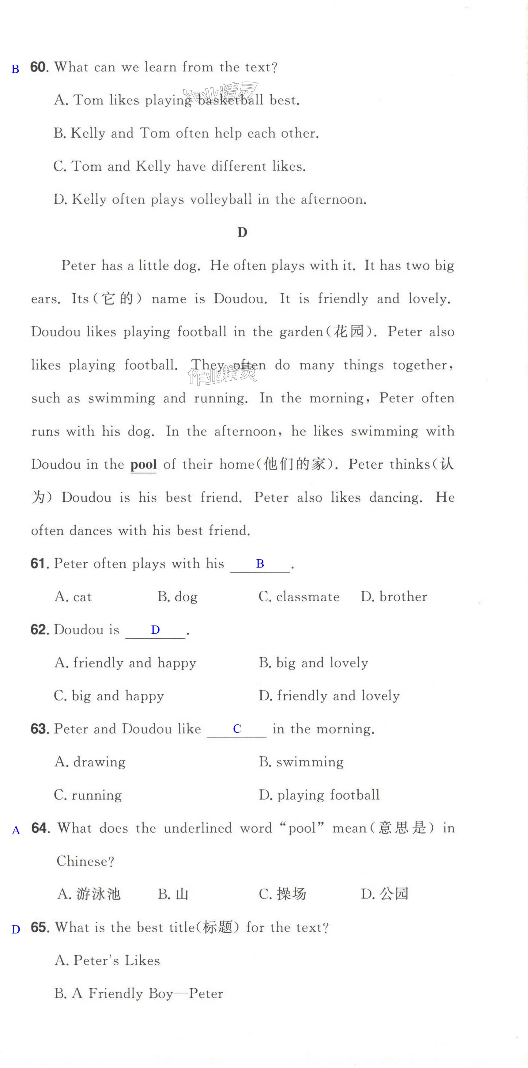 注:目前有些书本章节名称可能整理的还不是很完善,但都是按照顺序排列的,请同学们按照顺序仔细查找。练习册 2024年阳光同学分层设计七年级英语上册人教版福建专版 答案主要是用来给同学们做完题方便对答案用的,请勿直接抄袭。
