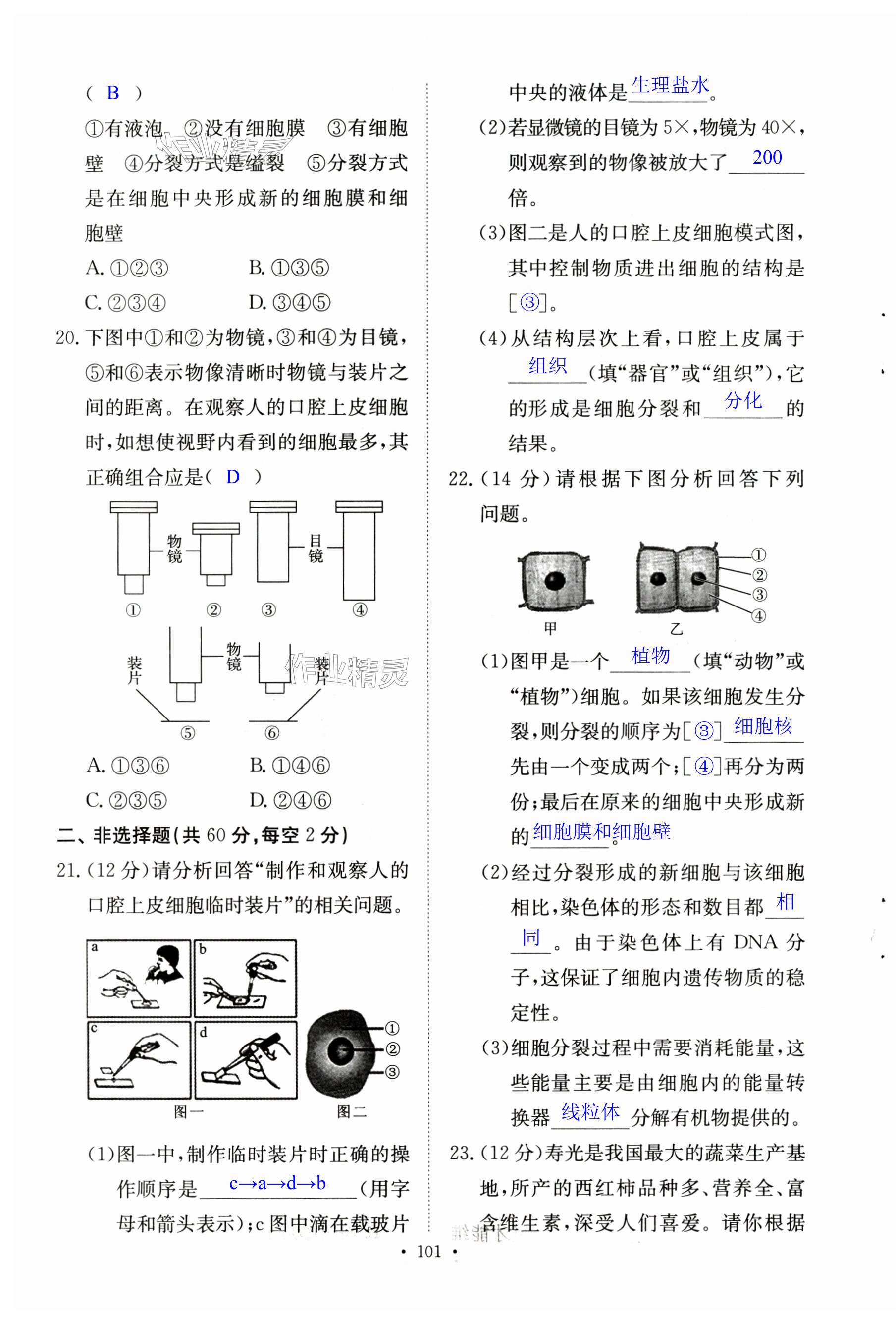 注:目前有些书本章节名称可能整理的还不是很完善,但都是按照顺序排列的,请同学们按照顺序仔细查找。练习册 2024年长江全能学案同步练习册七年级生物上册人教版 答案主要是用来给同学们做完题方便对答案用的,请勿直接抄袭。