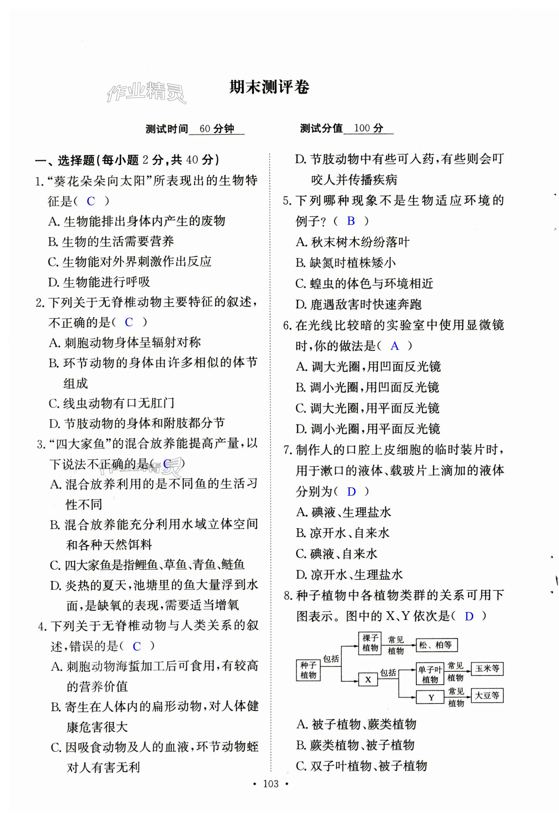 注:目前有些书本章节名称可能整理的还不是很完善,但都是按照顺序排列的,请同学们按照顺序仔细查找。练习册 2024年长江全能学案同步练习册七年级生物上册人教版 答案主要是用来给同学们做完题方便对答案用的,请勿直接抄袭。