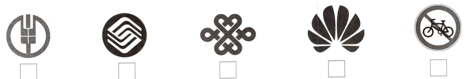 1.下面哪些标志是轴对称图形,是的在方框里画“√”,不是的画“×”。