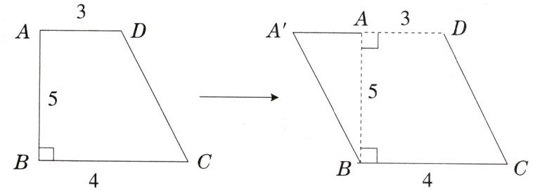 (2)梯形 ABCD 的 A 点向左平移多少厘米能变成一个平行四边形?面积增加了多少?(单位:cm)
