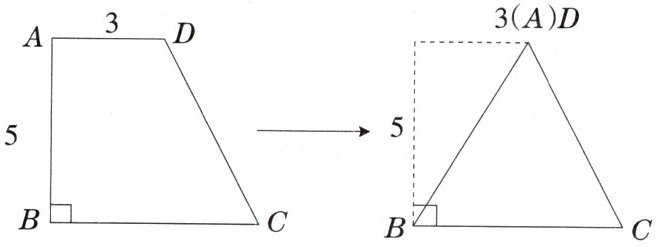 (1)梯形 ABCD 的 A 点向右平移和 D 点重合,变成一个三角形面积,减少了多少?(单位:cm)