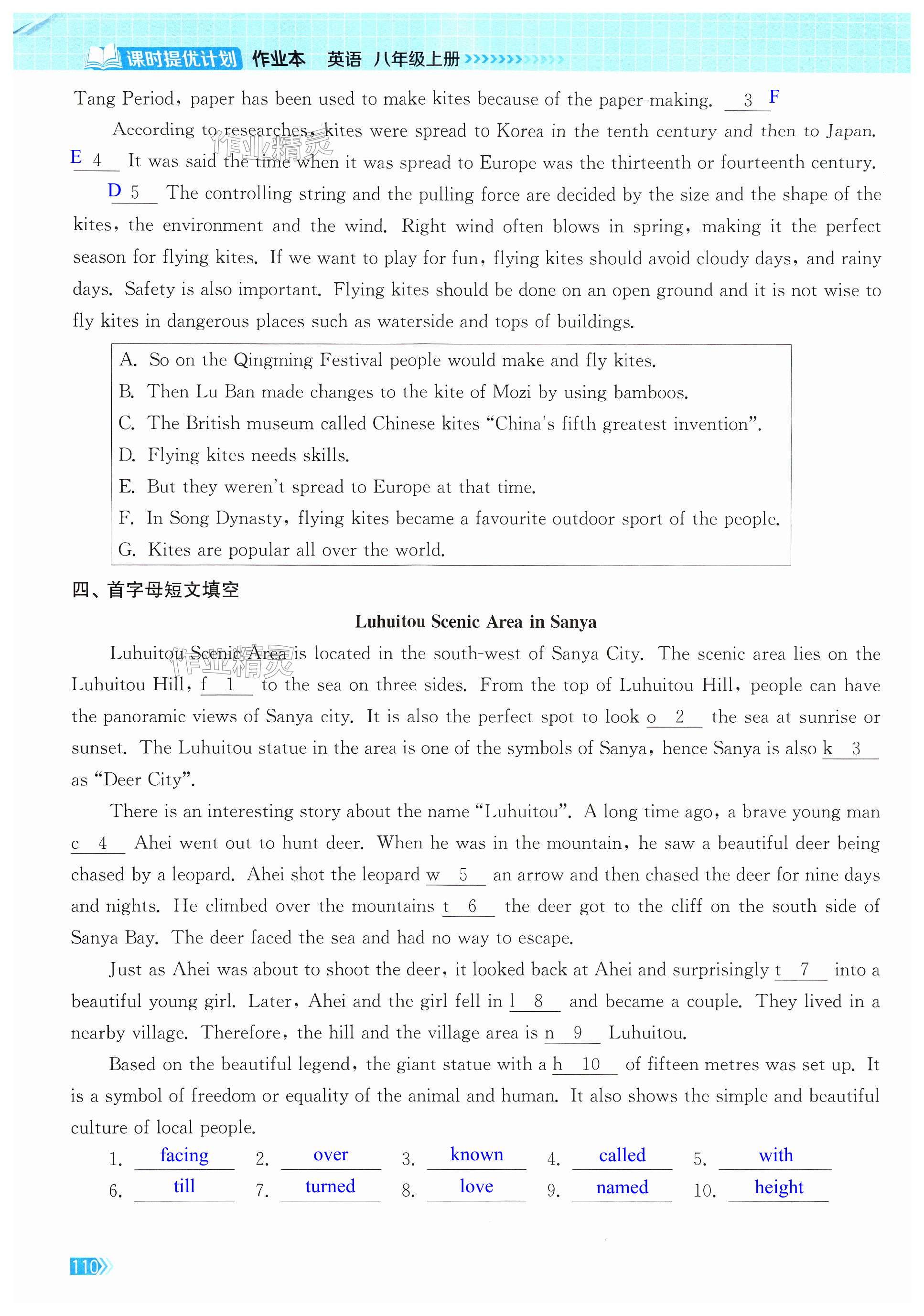 注:目前有些书本章节名称可能整理的还不是很完善,但都是按照顺序排列的,请同学们按照顺序仔细查找。练习册 2024年课时提优计划作业本八年级英语上册译林版连云港专版 答案主要是用来给同学们做完题方便对答案用的,请勿直接抄袭。