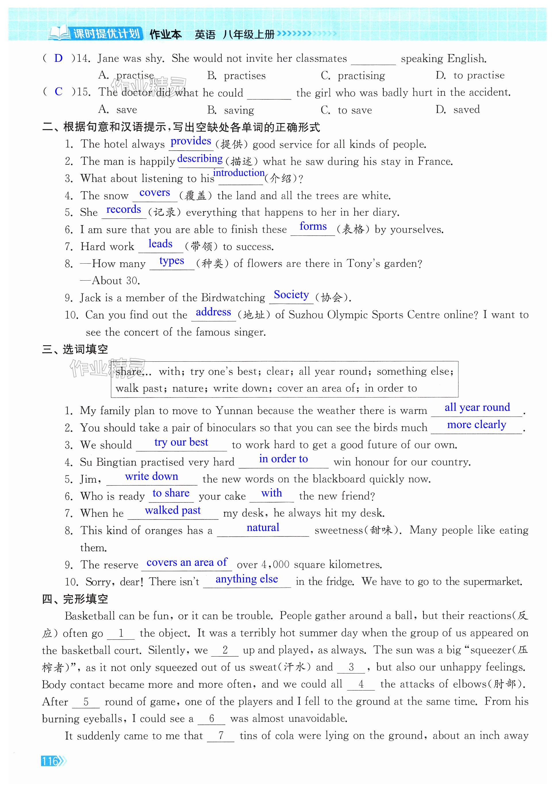 注:目前有些书本章节名称可能整理的还不是很完善,但都是按照顺序排列的,请同学们按照顺序仔细查找。练习册 2024年课时提优计划作业本八年级英语上册译林版连云港专版 答案主要是用来给同学们做完题方便对答案用的,请勿直接抄袭。
