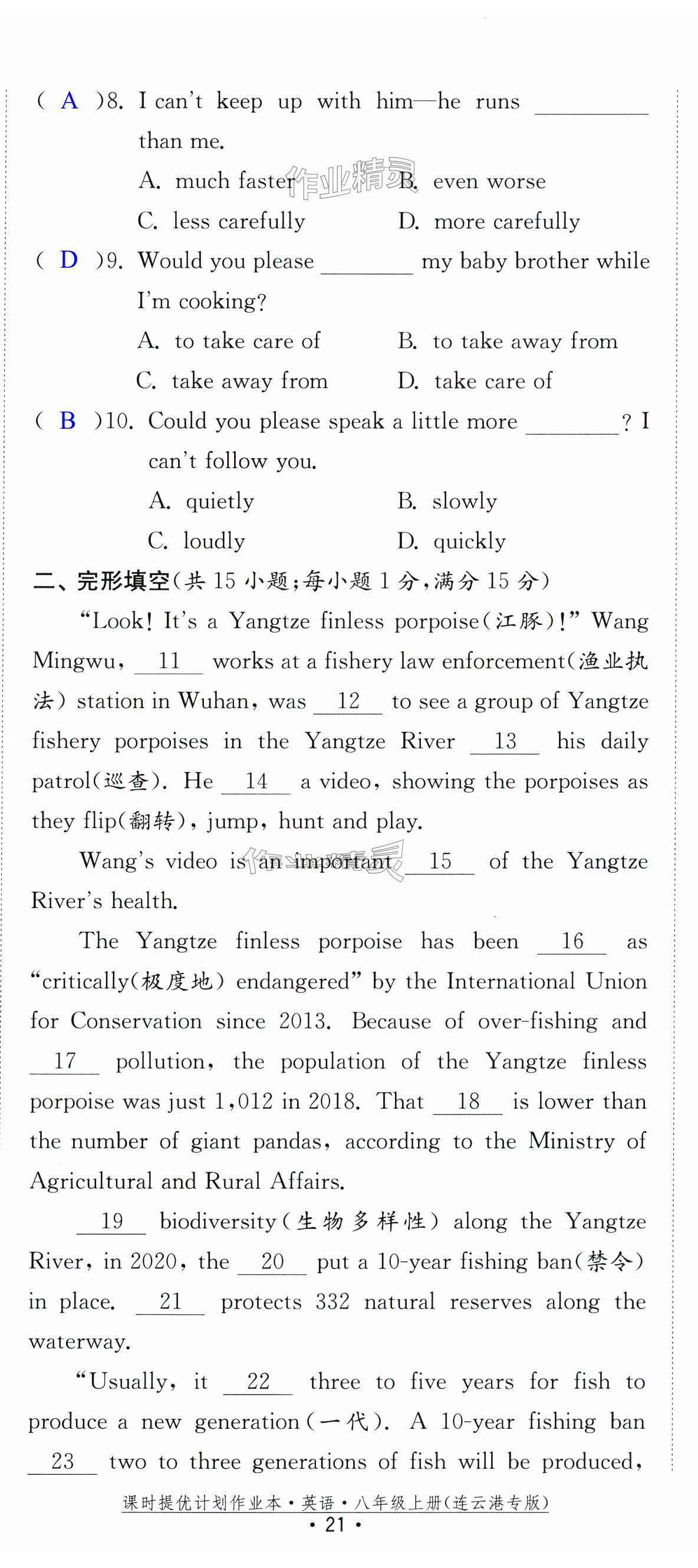 注:目前有些书本章节名称可能整理的还不是很完善,但都是按照顺序排列的,请同学们按照顺序仔细查找。练习册 2024年课时提优计划作业本八年级英语上册译林版连云港专版 答案主要是用来给同学们做完题方便对答案用的,请勿直接抄袭。