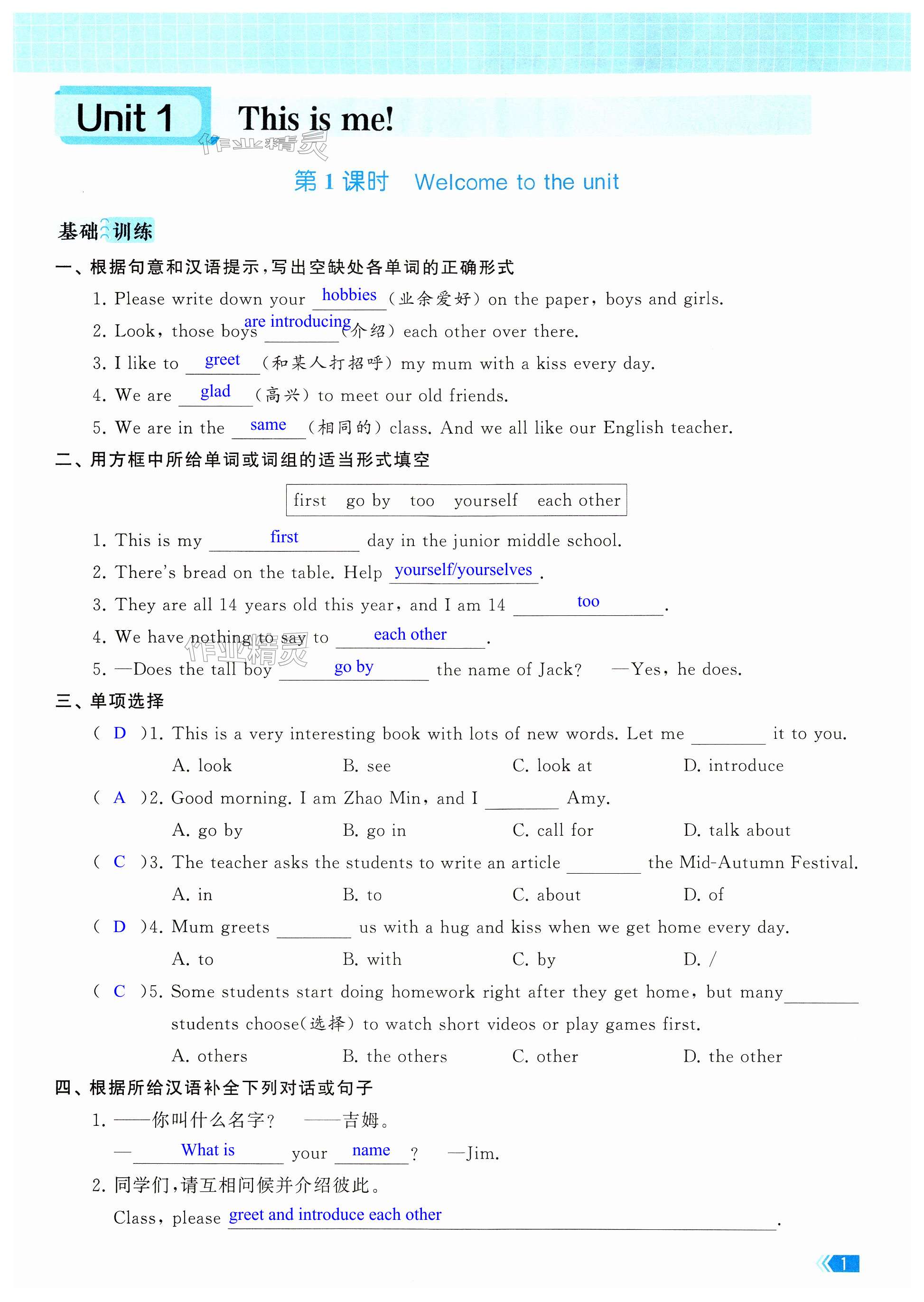 注:目前有些书本章节名称可能整理的还不是很完善,但都是按照顺序排列的,请同学们按照顺序仔细查找。练习册2024年课时提优计划作业本七年级英语上册译林版连云港专版答案主要是用来给同学们做完题方便对答案用的,请勿直接抄袭。