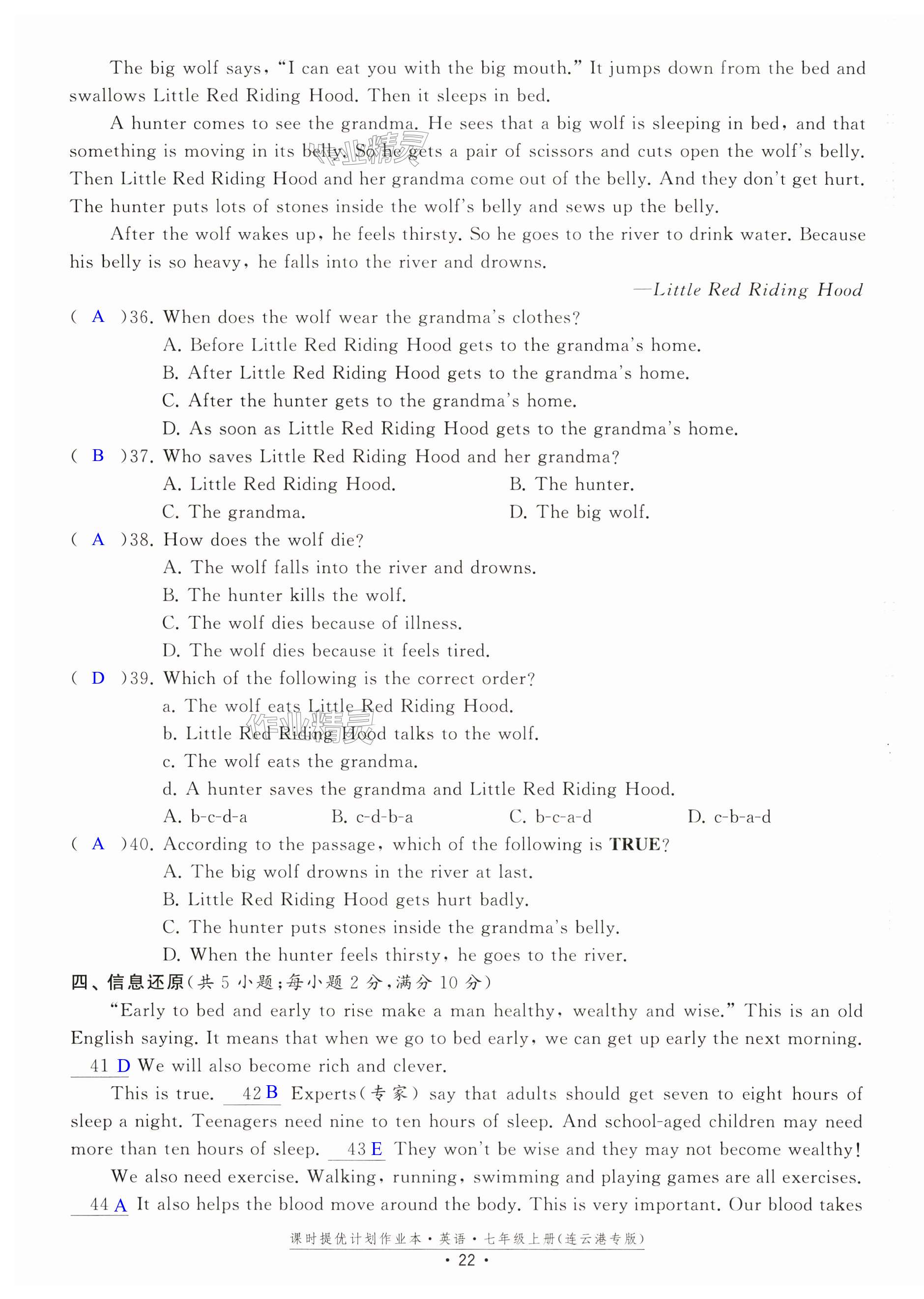 注:目前有些书本章节名称可能整理的还不是很完善,但都是按照顺序排列的,请同学们按照顺序仔细查找。练习册 2024年课时提优计划作业本七年级英语上册译林版连云港专版 答案主要是用来给同学们做完题方便对答案用的,请勿直接抄袭。