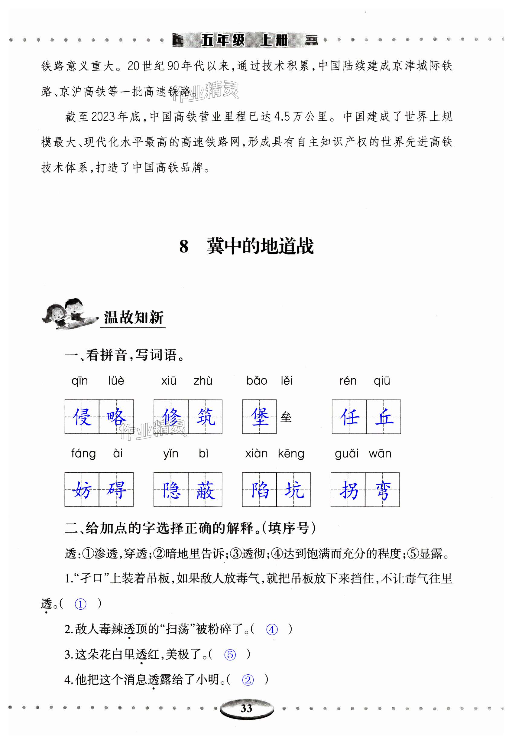注:目前有些书本章节名称可能整理的还不是很完善,但都是按照顺序排列的,请同学们按照顺序仔细查找。练习册 2024年学习与探究明天出版社五年级语文上册人教版 答案主要是用来给同学们做完题方便对答案用的,请勿直接抄袭。