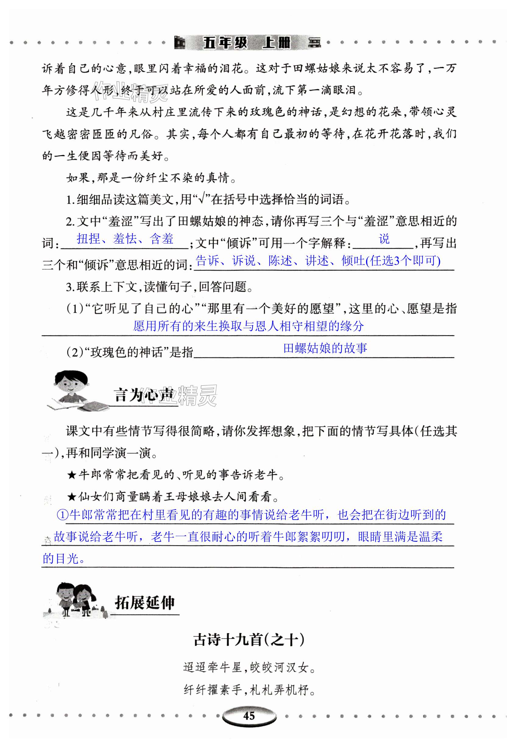 注:目前有些书本章节名称可能整理的还不是很完善,但都是按照顺序排列的,请同学们按照顺序仔细查找。练习册 2024年学习与探究明天出版社五年级语文上册人教版 答案主要是用来给同学们做完题方便对答案用的,请勿直接抄袭。