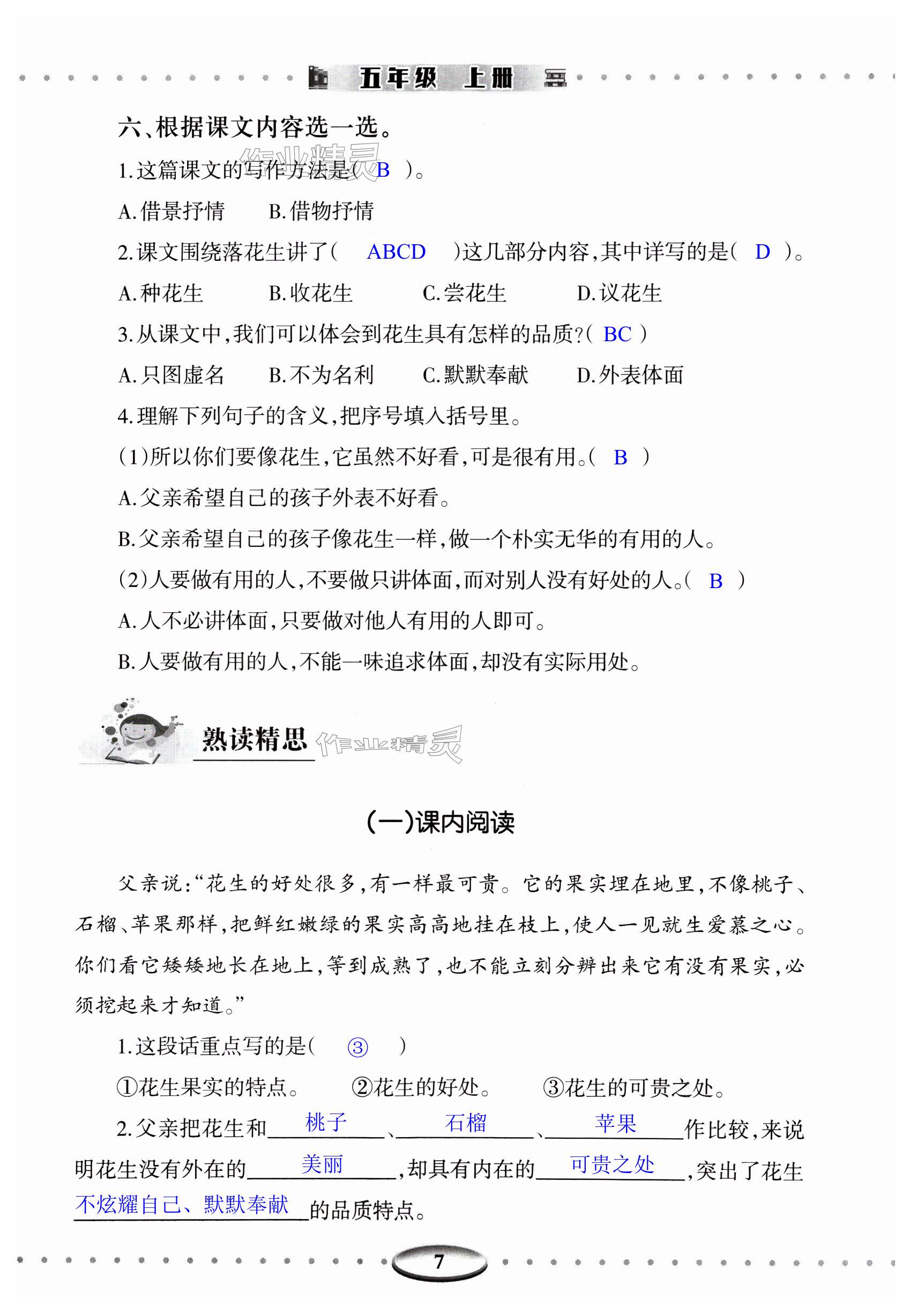 注:目前有些书本章节名称可能整理的还不是很完善,但都是按照顺序排列的,请同学们按照顺序仔细查找。练习册 2024年学习与探究明天出版社五年级语文上册人教版 答案主要是用来给同学们做完题方便对答案用的,请勿直接抄袭。