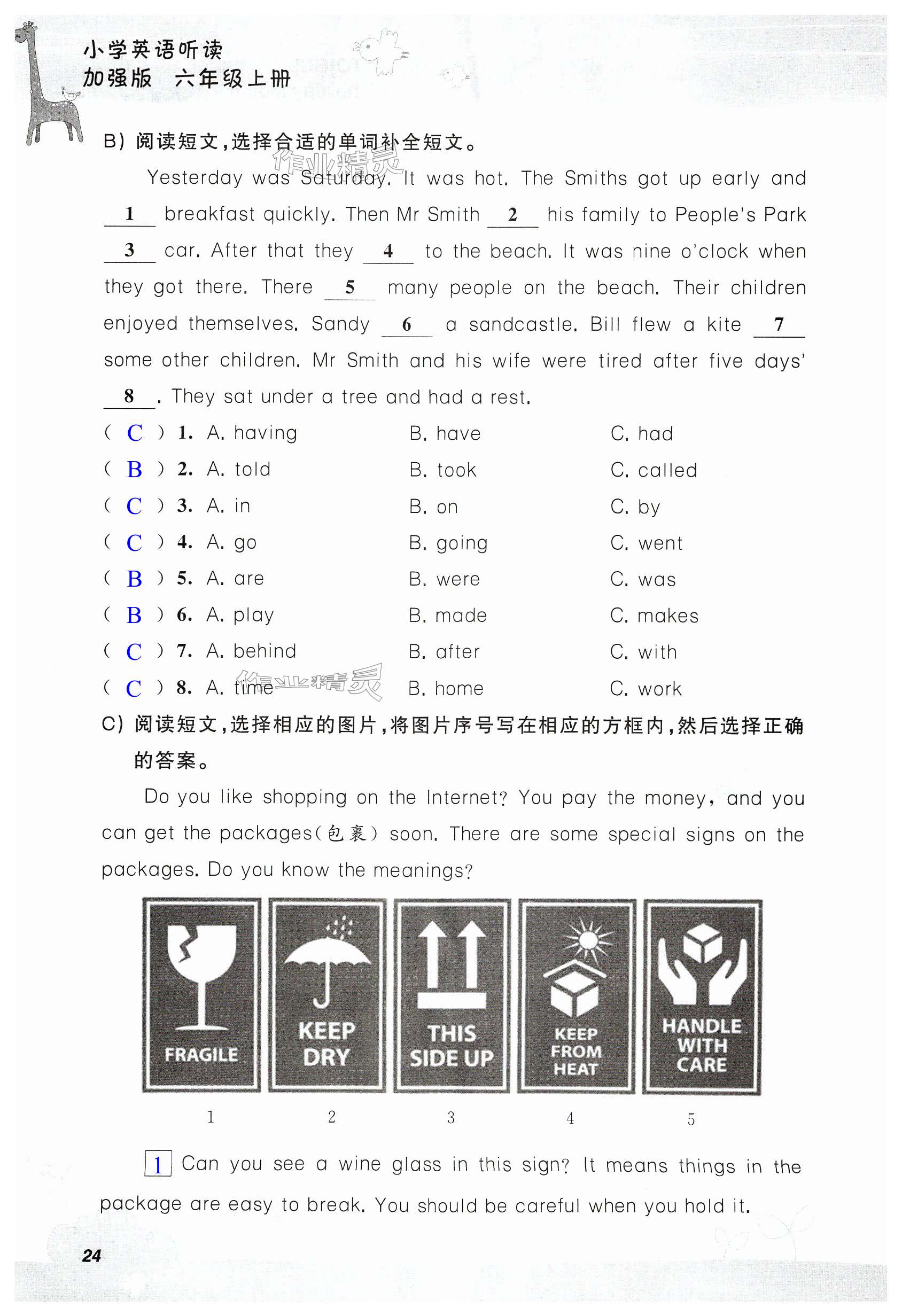 注:目前有些书本章节名称可能整理的还不是很完善,但都是按照顺序排列的,请同学们按照顺序仔细查找。练习册 2024年听读教室小学英语听读六年级上册译林版加强版 答案主要是用来给同学们做完题方便对答案用的,请勿直接抄袭。