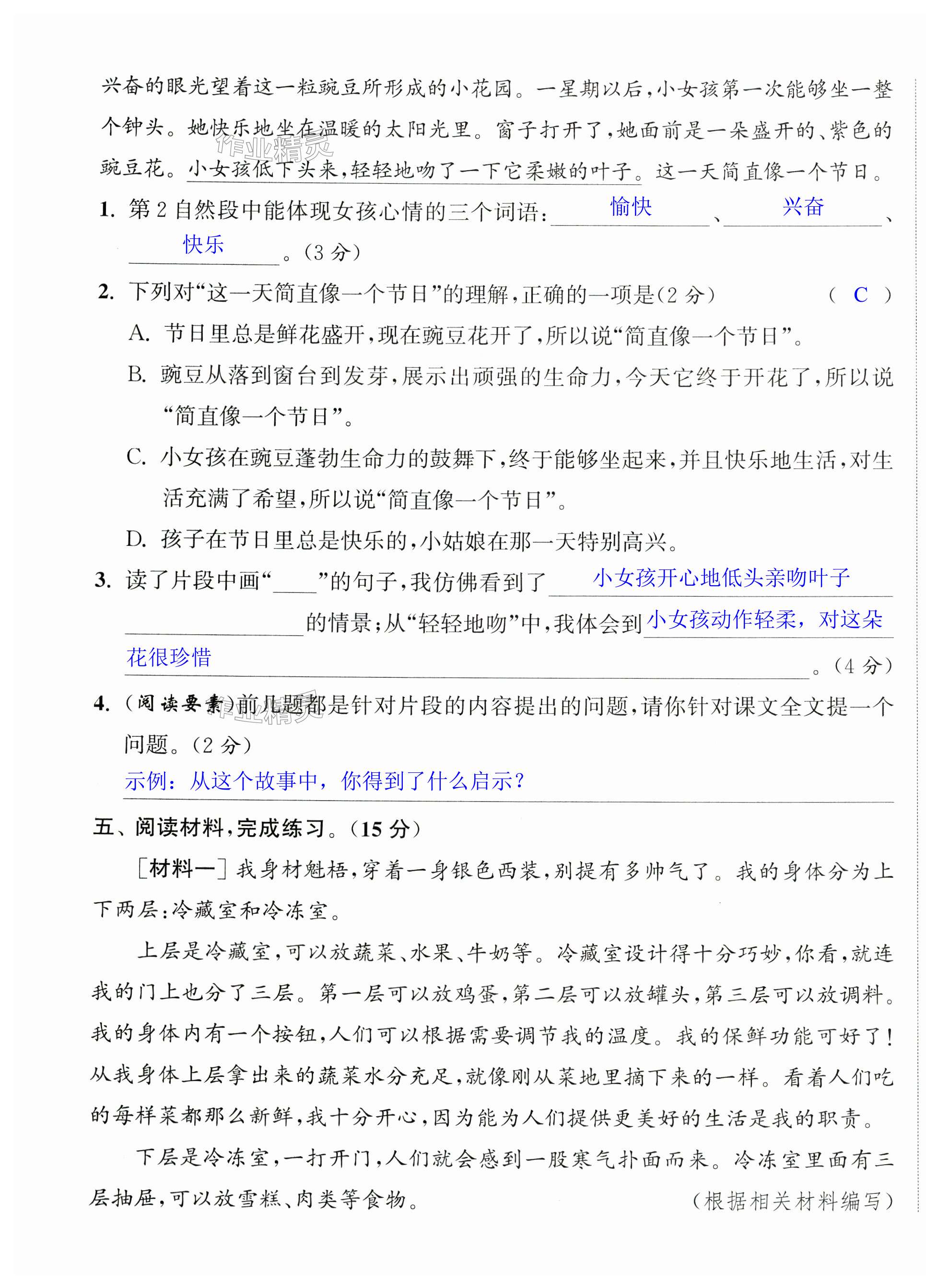 注:目前有些书本章节名称可能整理的还不是很完善,但都是按照顺序排列的,请同学们按照顺序仔细查找。练习册 2024年通成学典课时作业本四年级语文上册人教版苏州专版 答案主要是用来给同学们做完题方便对答案用的,请勿直接抄袭。