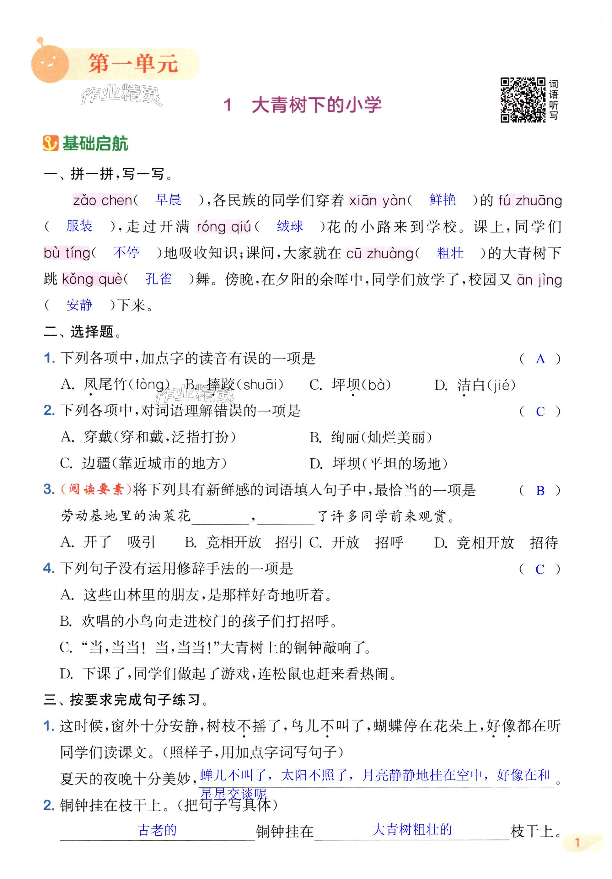 注:目前有些书本章节名称可能整理的还不是很完善,但都是按照顺序排列的,请同学们按照顺序仔细查找。练习册2024年通成学典课时作业本三年级语文上册人教版苏州专版答案主要是用来给同学们做完题方便对答案用的,请勿直接抄袭。