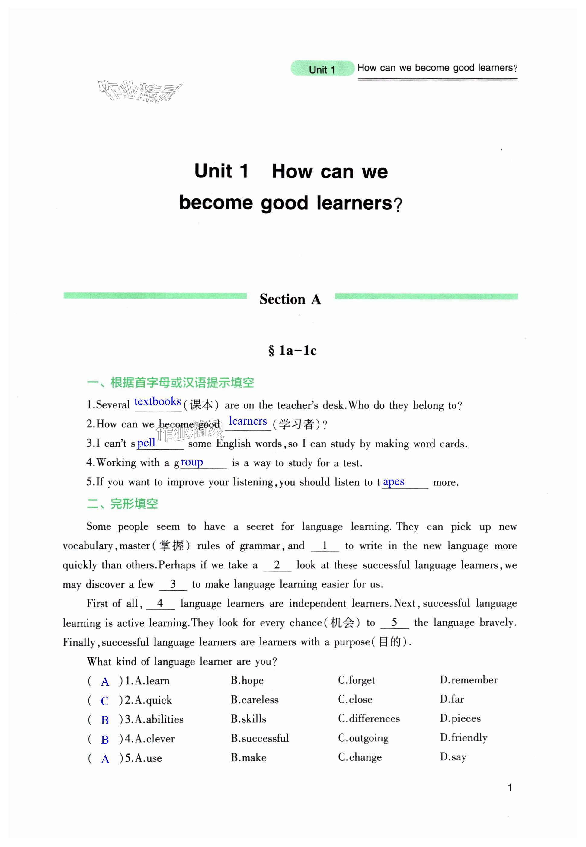 注:目前有些书本章节名称可能整理的还不是很完善,但都是按照顺序排列的,请同学们按照顺序仔细查找。练习册 2024年新课程实践与探究丛书九年级英语上册人教版 答案主要是用来给同学们做完题方便对答案用的,请勿直接抄袭。