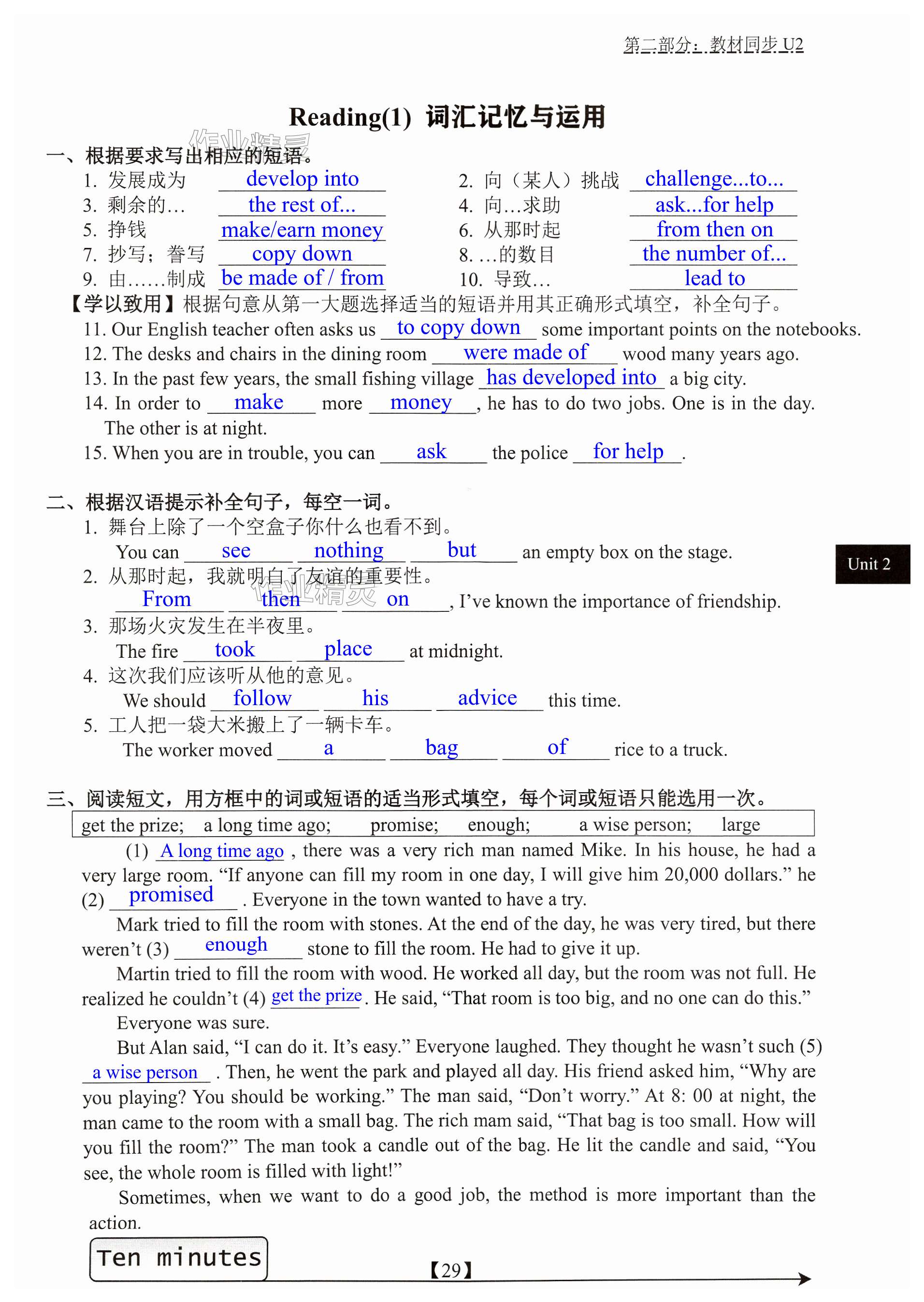 注:目前有些书本章节名称可能整理的还不是很完善,但都是按照顺序排列的,请同学们按照顺序仔细查找。练习册 2024年基础知识同步训练10分钟八年级英语上册沪教版深圳专版 答案主要是用来给同学们做完题方便对答案用的,请勿直接抄袭。