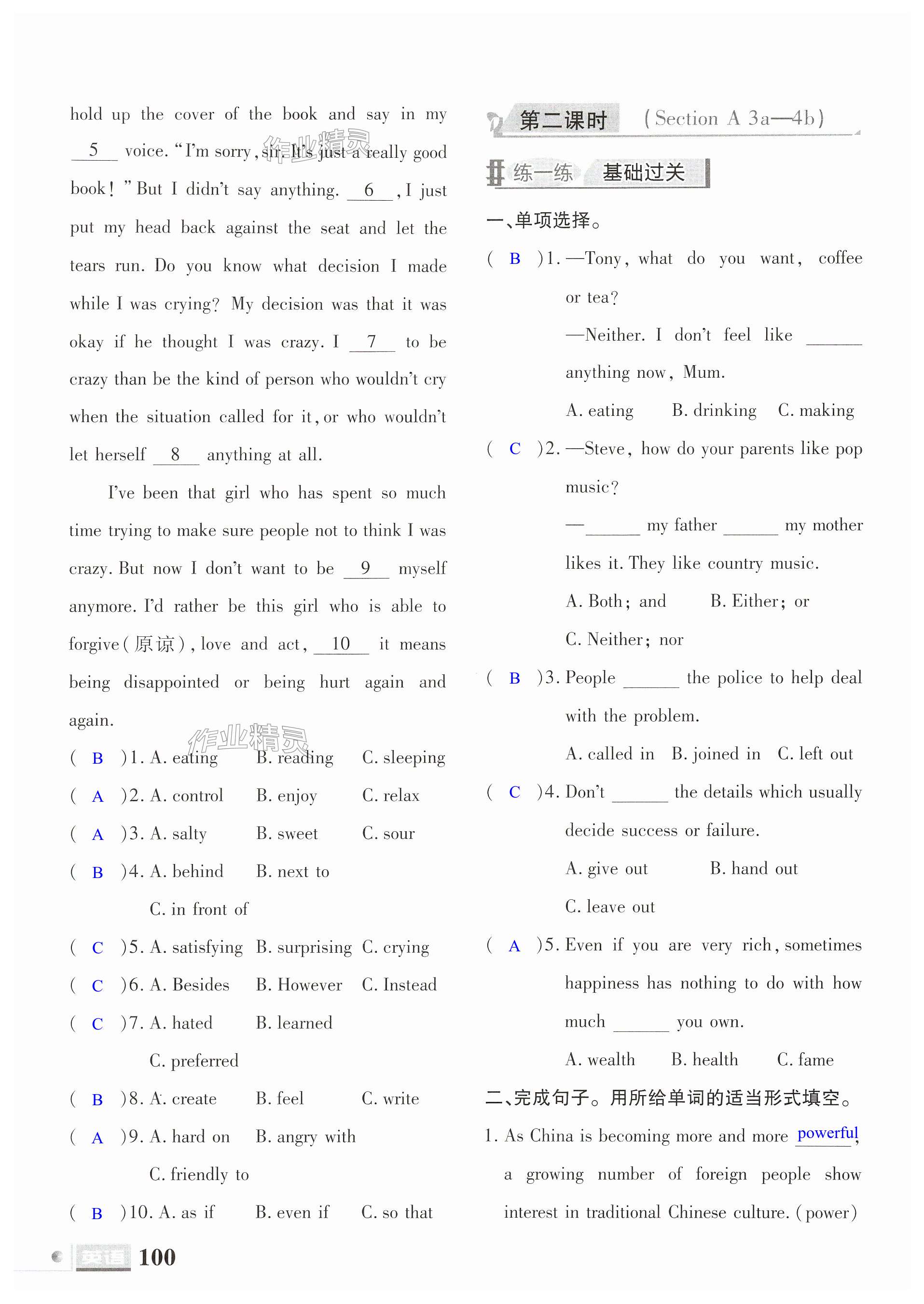 注:目前有些书本章节名称可能整理的还不是很完善,但都是按照顺序排列的,请同学们按照顺序仔细查找。练习册 2024年文科爱好者九年级英语全一册人教版 答案主要是用来给同学们做完题方便对答案用的,请勿直接抄袭。
