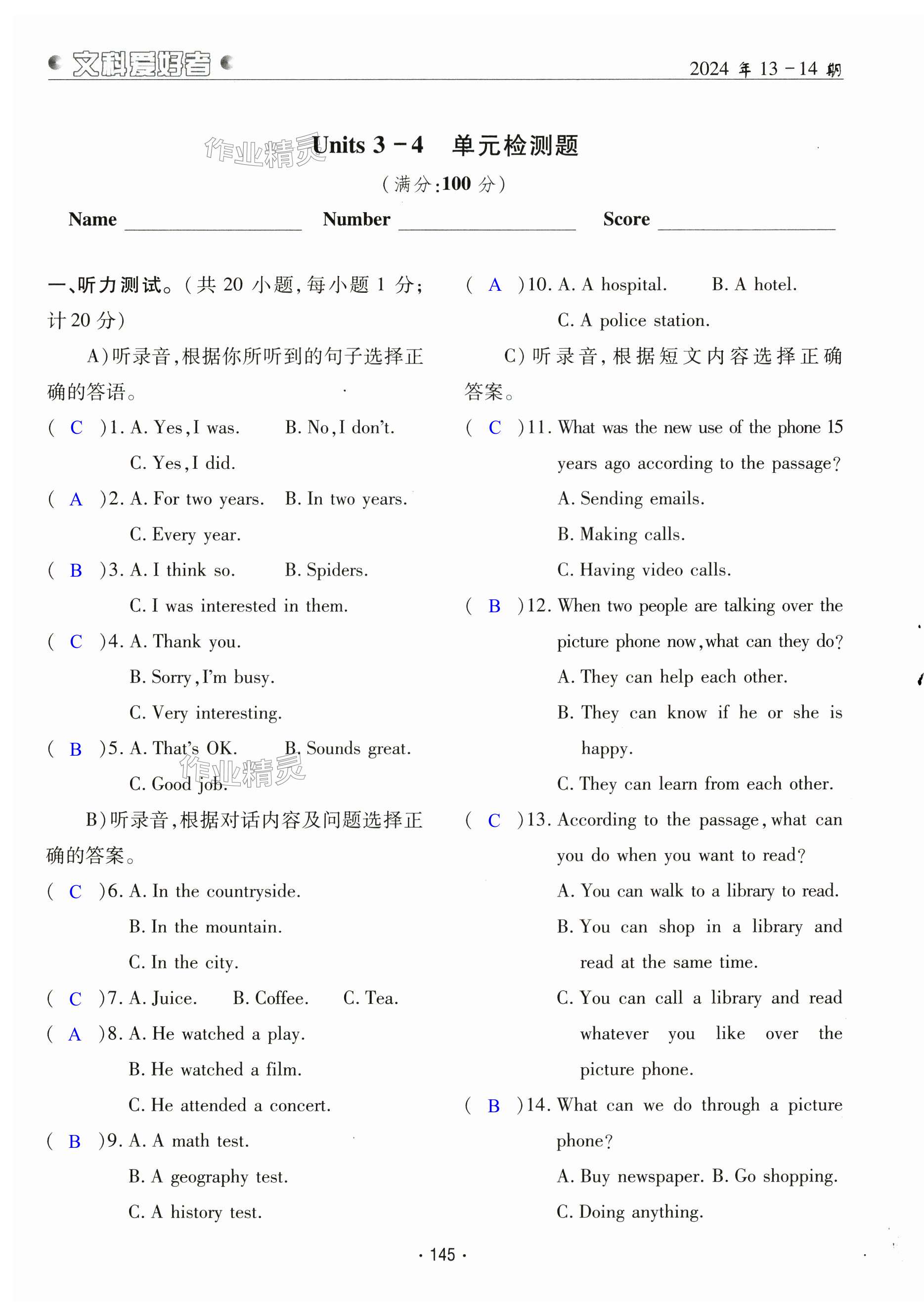 注:目前有些书本章节名称可能整理的还不是很完善,但都是按照顺序排列的,请同学们按照顺序仔细查找。练习册 2024年文科爱好者九年级英语全一册人教版 答案主要是用来给同学们做完题方便对答案用的,请勿直接抄袭。