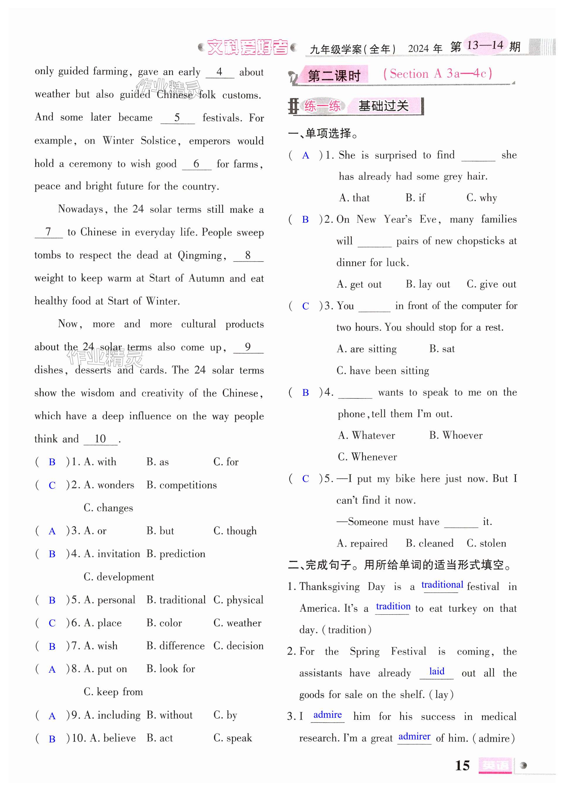 注:目前有些书本章节名称可能整理的还不是很完善,但都是按照顺序排列的,请同学们按照顺序仔细查找。练习册 2024年文科爱好者九年级英语全一册人教版 答案主要是用来给同学们做完题方便对答案用的,请勿直接抄袭。
