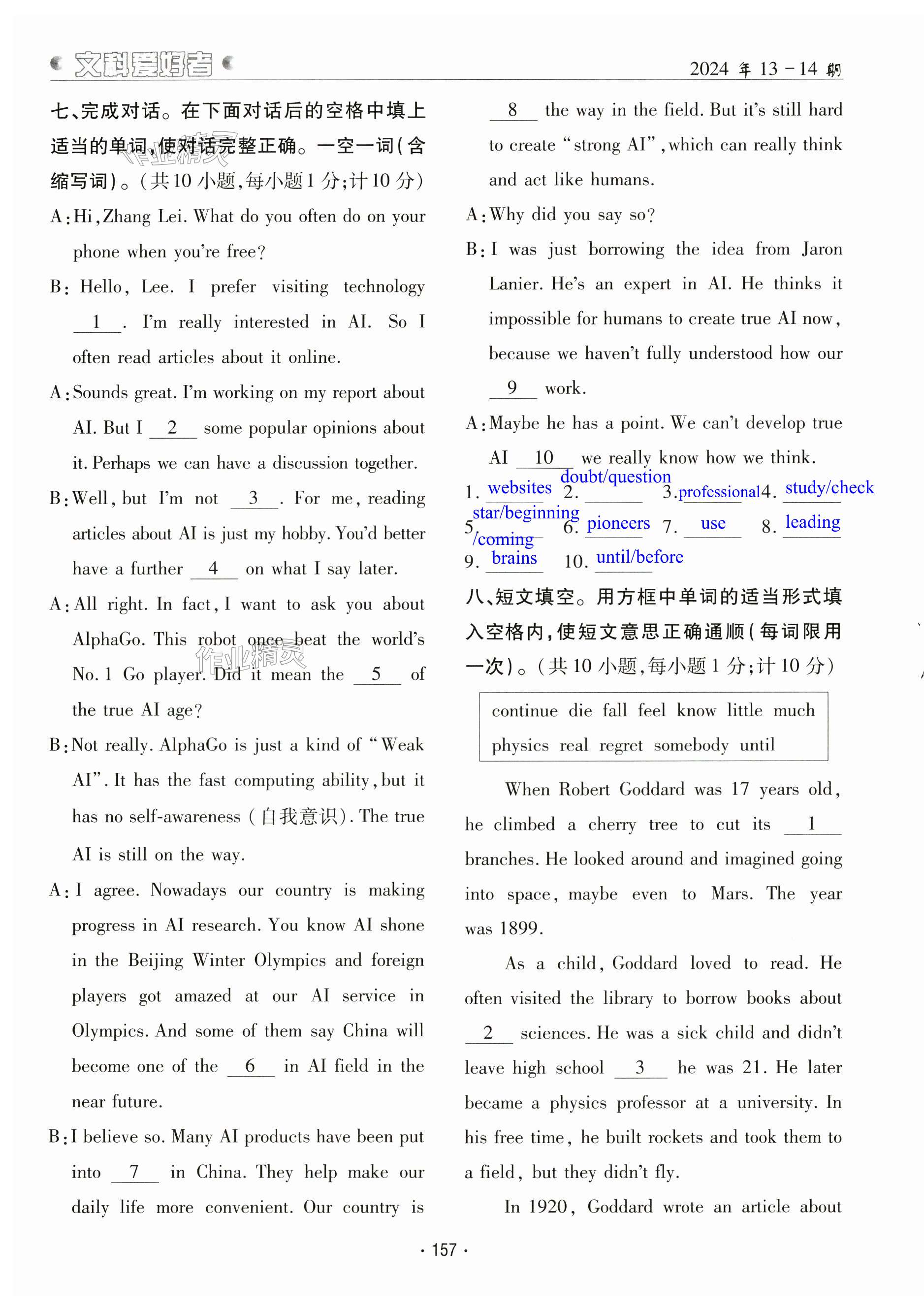 注:目前有些书本章节名称可能整理的还不是很完善,但都是按照顺序排列的,请同学们按照顺序仔细查找。练习册 2024年文科爱好者九年级英语全一册人教版 答案主要是用来给同学们做完题方便对答案用的,请勿直接抄袭。
