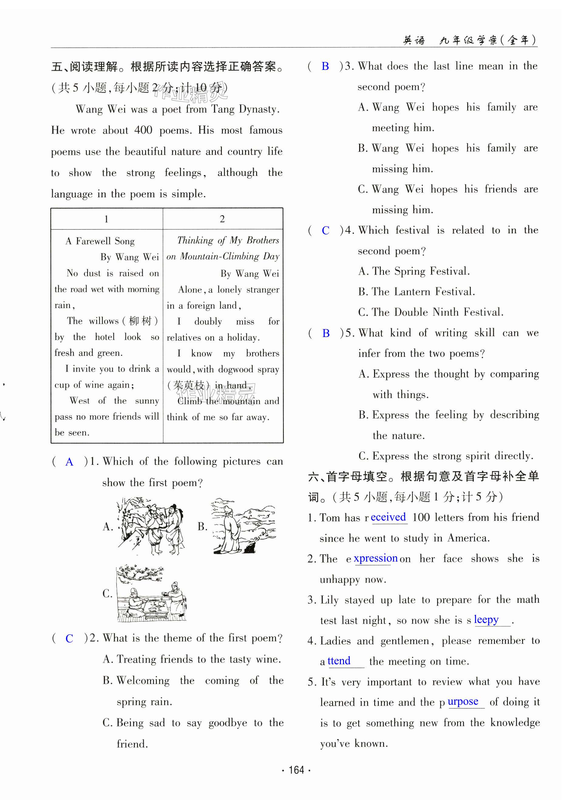 注:目前有些书本章节名称可能整理的还不是很完善,但都是按照顺序排列的,请同学们按照顺序仔细查找。练习册 2024年文科爱好者九年级英语全一册人教版 答案主要是用来给同学们做完题方便对答案用的,请勿直接抄袭。