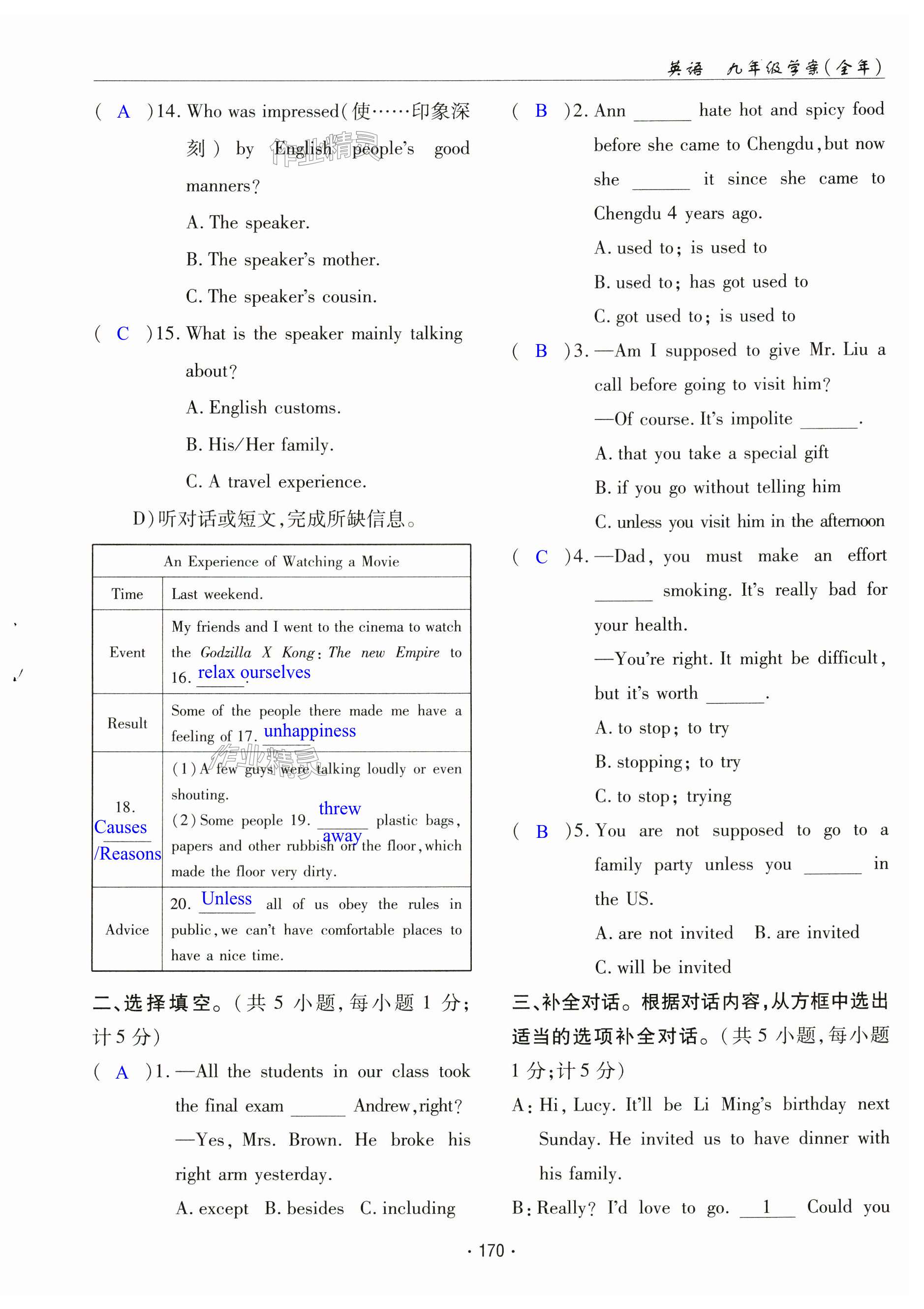 注:目前有些书本章节名称可能整理的还不是很完善,但都是按照顺序排列的,请同学们按照顺序仔细查找。练习册 2024年文科爱好者九年级英语全一册人教版 答案主要是用来给同学们做完题方便对答案用的,请勿直接抄袭。
