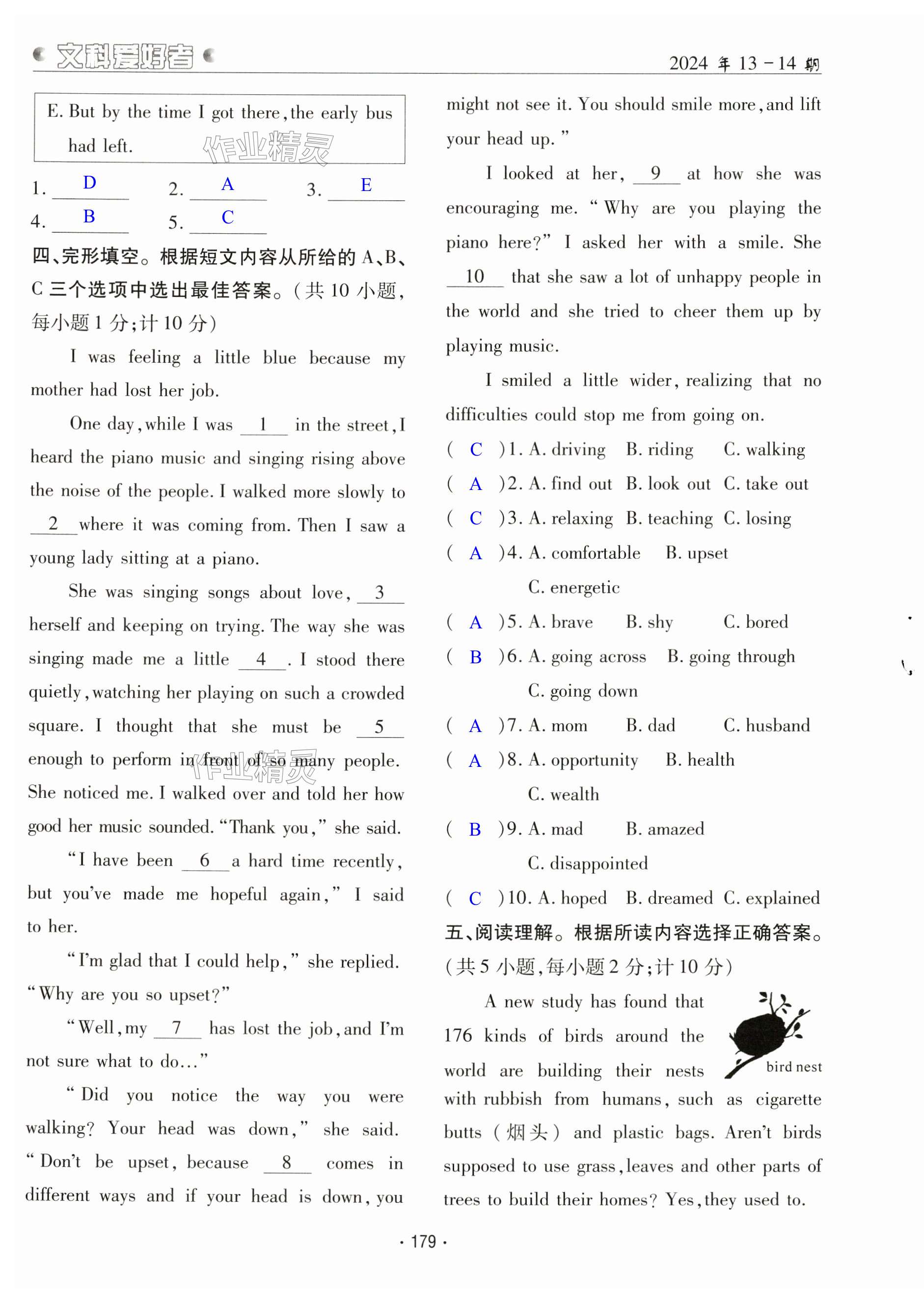 注:目前有些书本章节名称可能整理的还不是很完善,但都是按照顺序排列的,请同学们按照顺序仔细查找。练习册 2024年文科爱好者九年级英语全一册人教版 答案主要是用来给同学们做完题方便对答案用的,请勿直接抄袭。