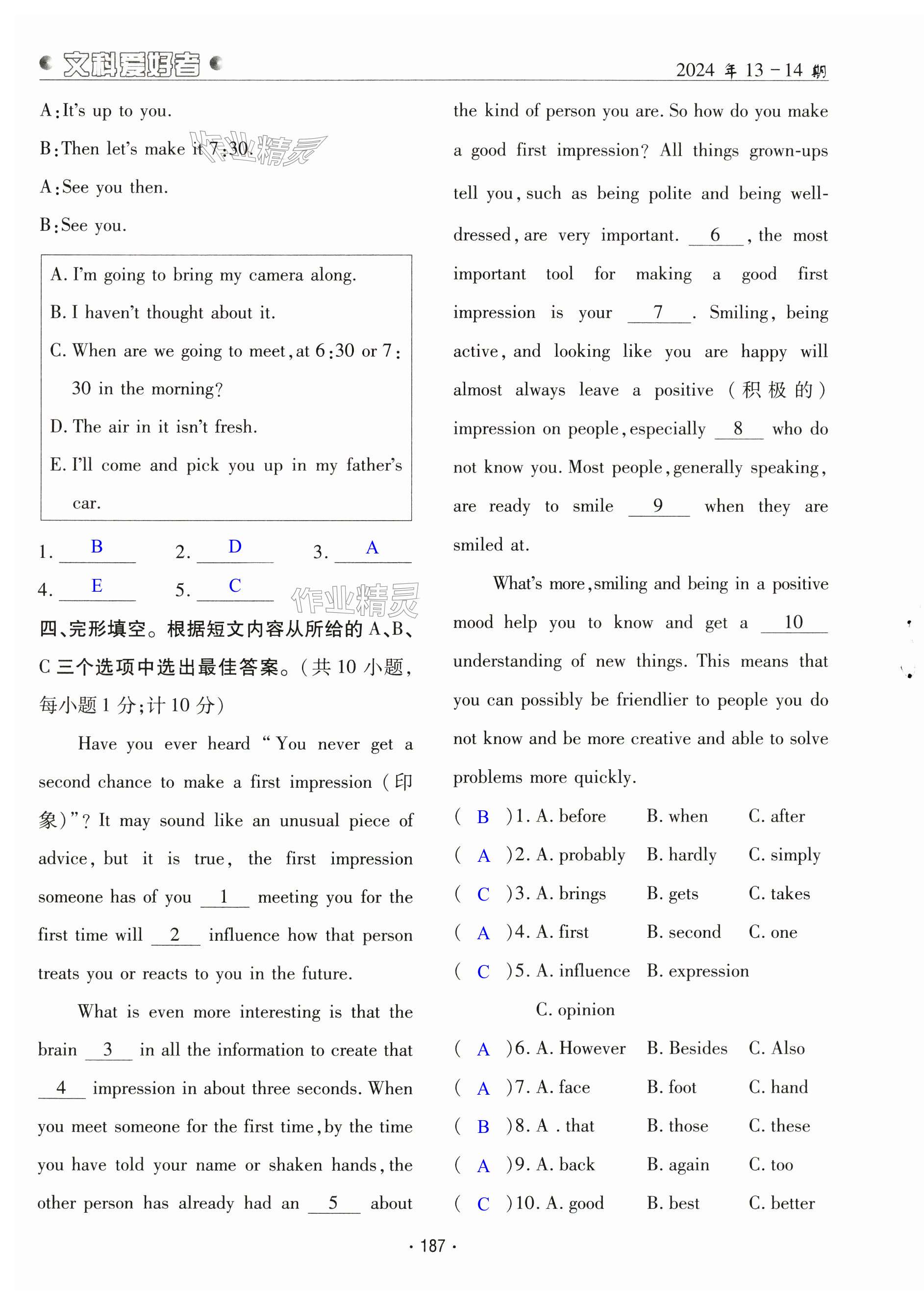 注:目前有些书本章节名称可能整理的还不是很完善,但都是按照顺序排列的,请同学们按照顺序仔细查找。练习册 2024年文科爱好者九年级英语全一册人教版 答案主要是用来给同学们做完题方便对答案用的,请勿直接抄袭。
