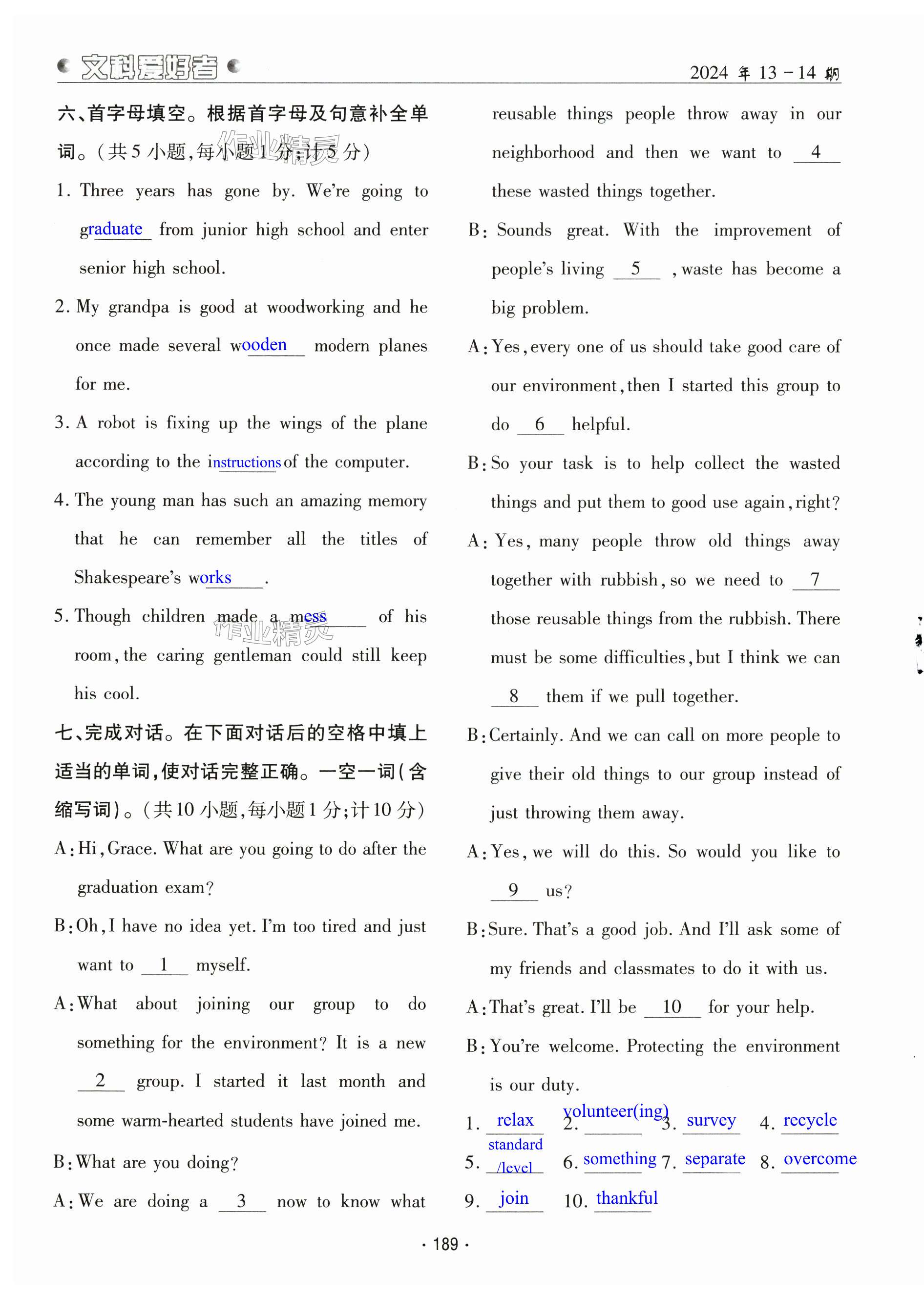 注:目前有些书本章节名称可能整理的还不是很完善,但都是按照顺序排列的,请同学们按照顺序仔细查找。练习册 2024年文科爱好者九年级英语全一册人教版 答案主要是用来给同学们做完题方便对答案用的,请勿直接抄袭。