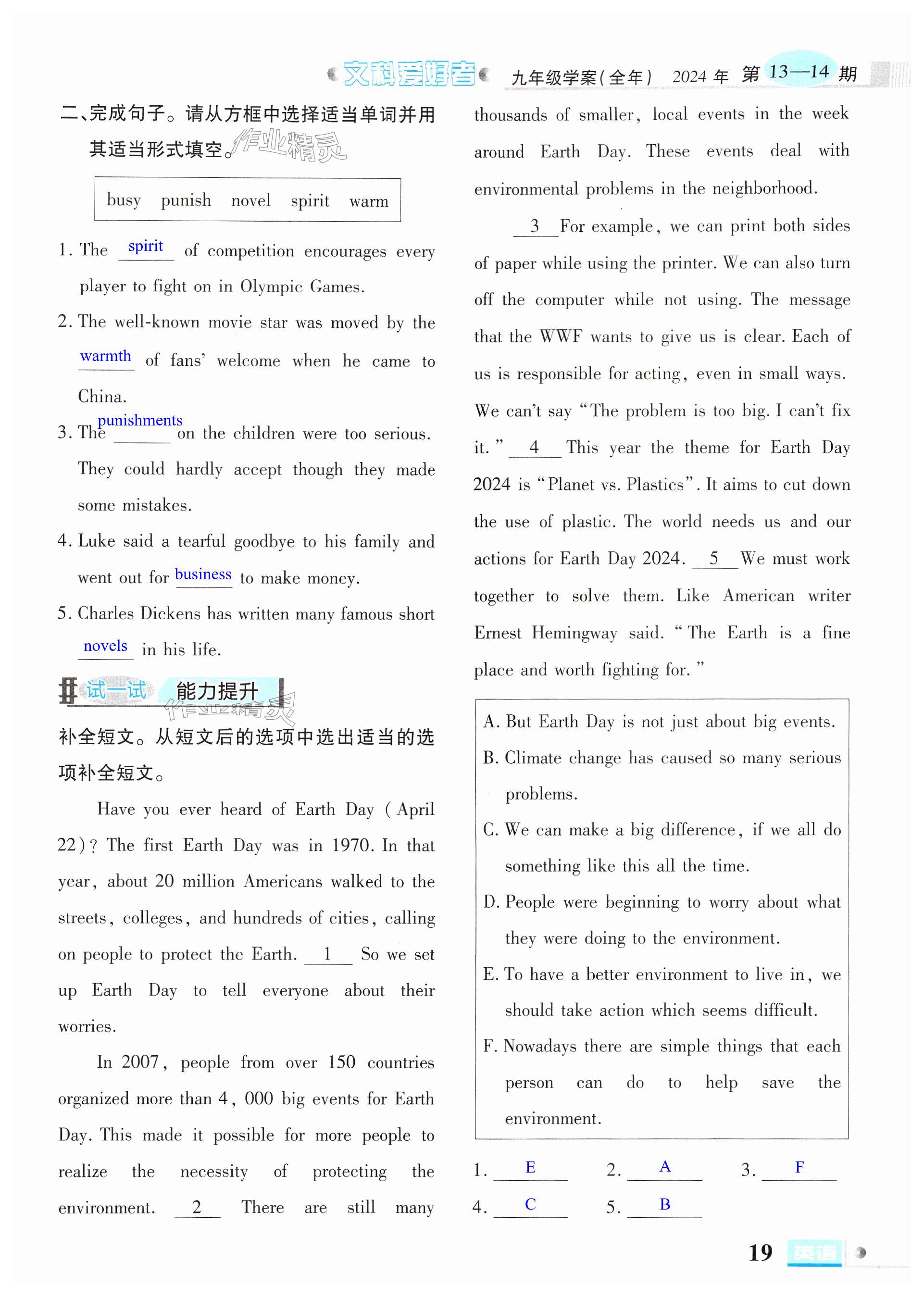 注:目前有些书本章节名称可能整理的还不是很完善,但都是按照顺序排列的,请同学们按照顺序仔细查找。练习册 2024年文科爱好者九年级英语全一册人教版 答案主要是用来给同学们做完题方便对答案用的,请勿直接抄袭。
