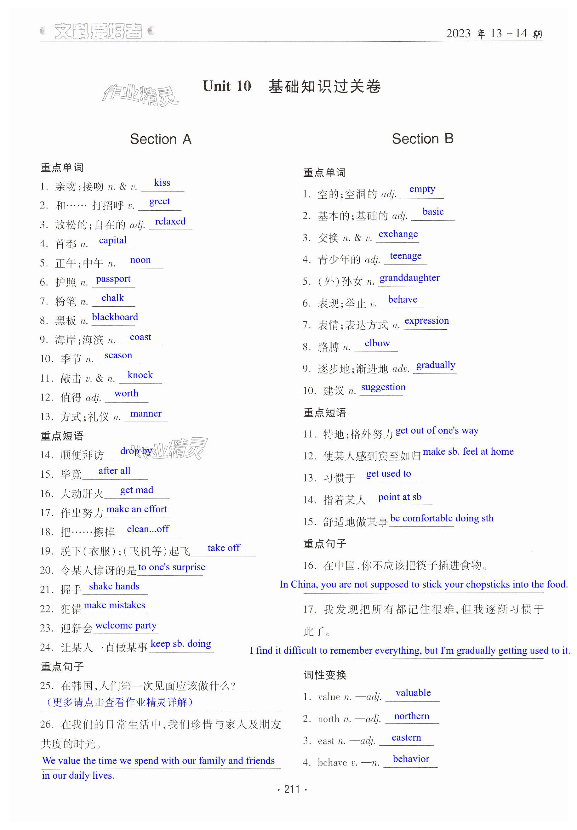注:目前有些书本章节名称可能整理的还不是很完善,但都是按照顺序排列的,请同学们按照顺序仔细查找。练习册 2024年文科爱好者九年级英语全一册人教版 答案主要是用来给同学们做完题方便对答案用的,请勿直接抄袭。