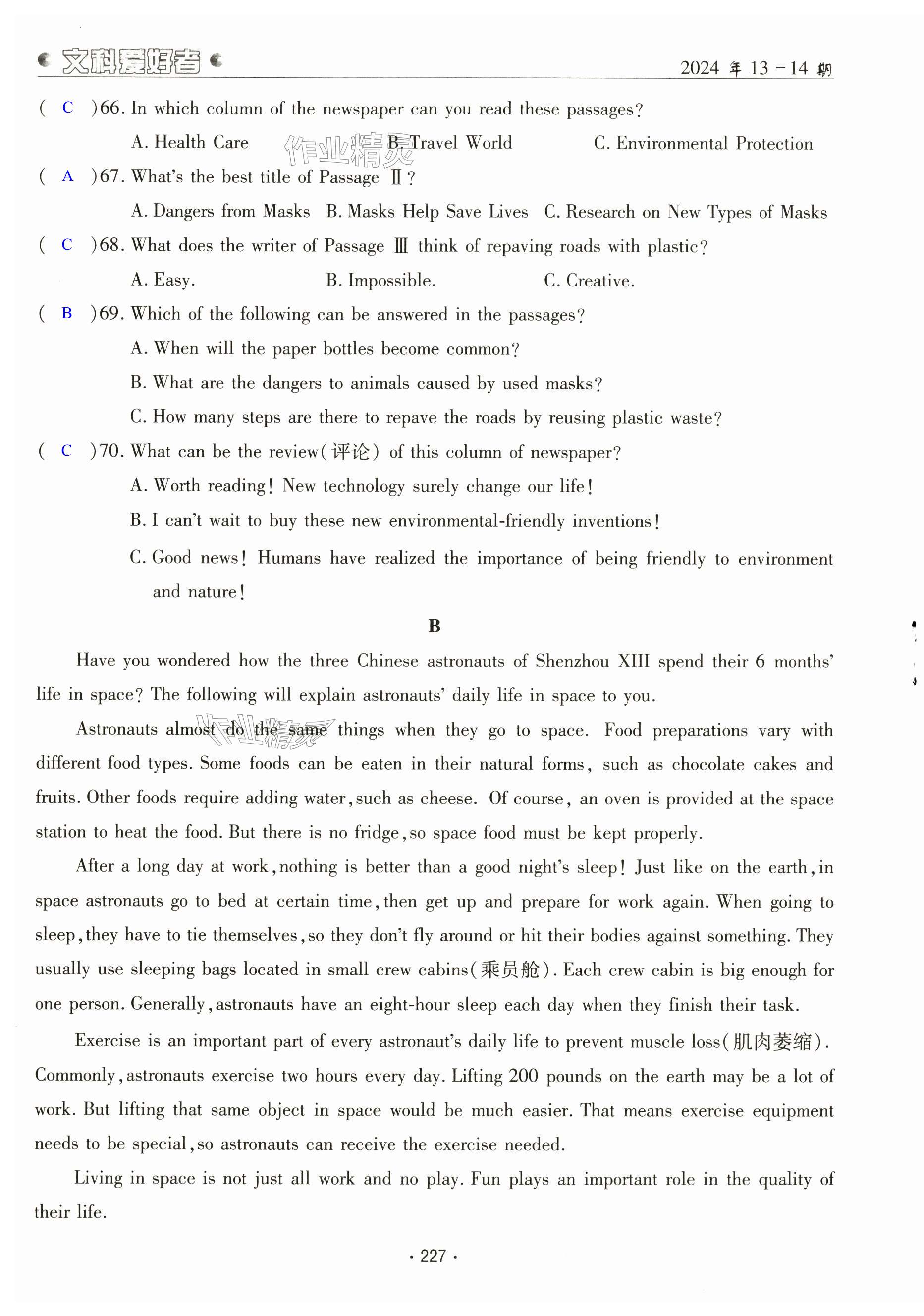 注:目前有些书本章节名称可能整理的还不是很完善,但都是按照顺序排列的,请同学们按照顺序仔细查找。练习册 2024年文科爱好者九年级英语全一册人教版 答案主要是用来给同学们做完题方便对答案用的,请勿直接抄袭。