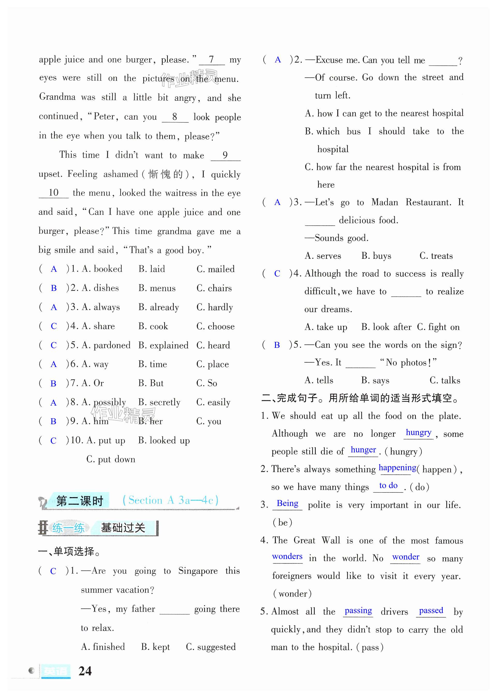 注:目前有些书本章节名称可能整理的还不是很完善,但都是按照顺序排列的,请同学们按照顺序仔细查找。练习册 2024年文科爱好者九年级英语全一册人教版 答案主要是用来给同学们做完题方便对答案用的,请勿直接抄袭。