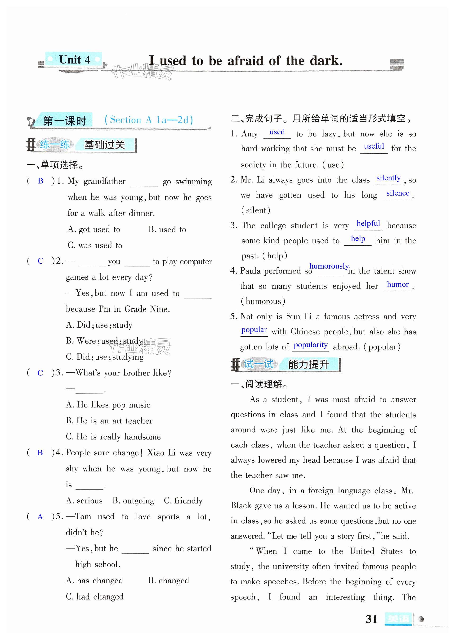 注:目前有些书本章节名称可能整理的还不是很完善,但都是按照顺序排列的,请同学们按照顺序仔细查找。练习册 2024年文科爱好者九年级英语全一册人教版 答案主要是用来给同学们做完题方便对答案用的,请勿直接抄袭。
