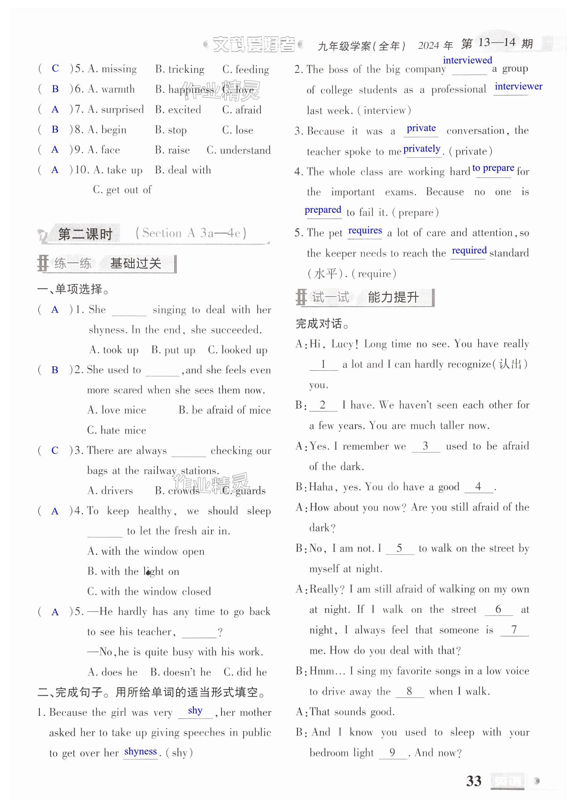 注:目前有些书本章节名称可能整理的还不是很完善,但都是按照顺序排列的,请同学们按照顺序仔细查找。练习册 2024年文科爱好者九年级英语全一册人教版 答案主要是用来给同学们做完题方便对答案用的,请勿直接抄袭。