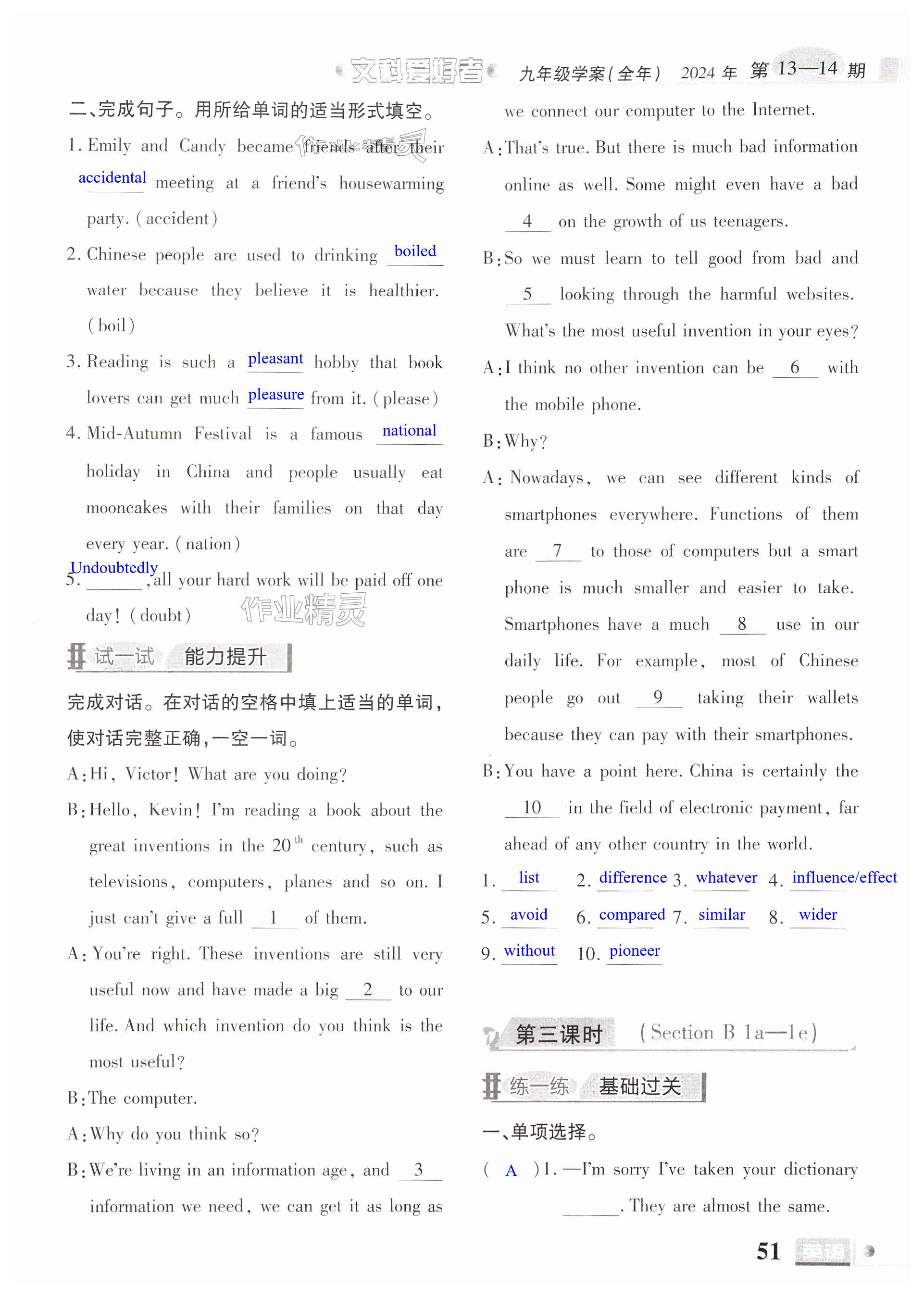 注:目前有些书本章节名称可能整理的还不是很完善,但都是按照顺序排列的,请同学们按照顺序仔细查找。练习册 2024年文科爱好者九年级英语全一册人教版 答案主要是用来给同学们做完题方便对答案用的,请勿直接抄袭。
