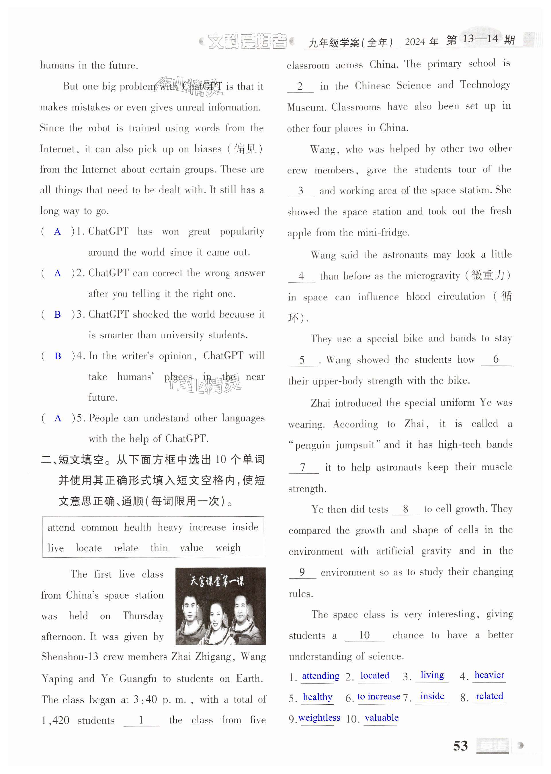 注:目前有些书本章节名称可能整理的还不是很完善,但都是按照顺序排列的,请同学们按照顺序仔细查找。练习册 2024年文科爱好者九年级英语全一册人教版 答案主要是用来给同学们做完题方便对答案用的,请勿直接抄袭。