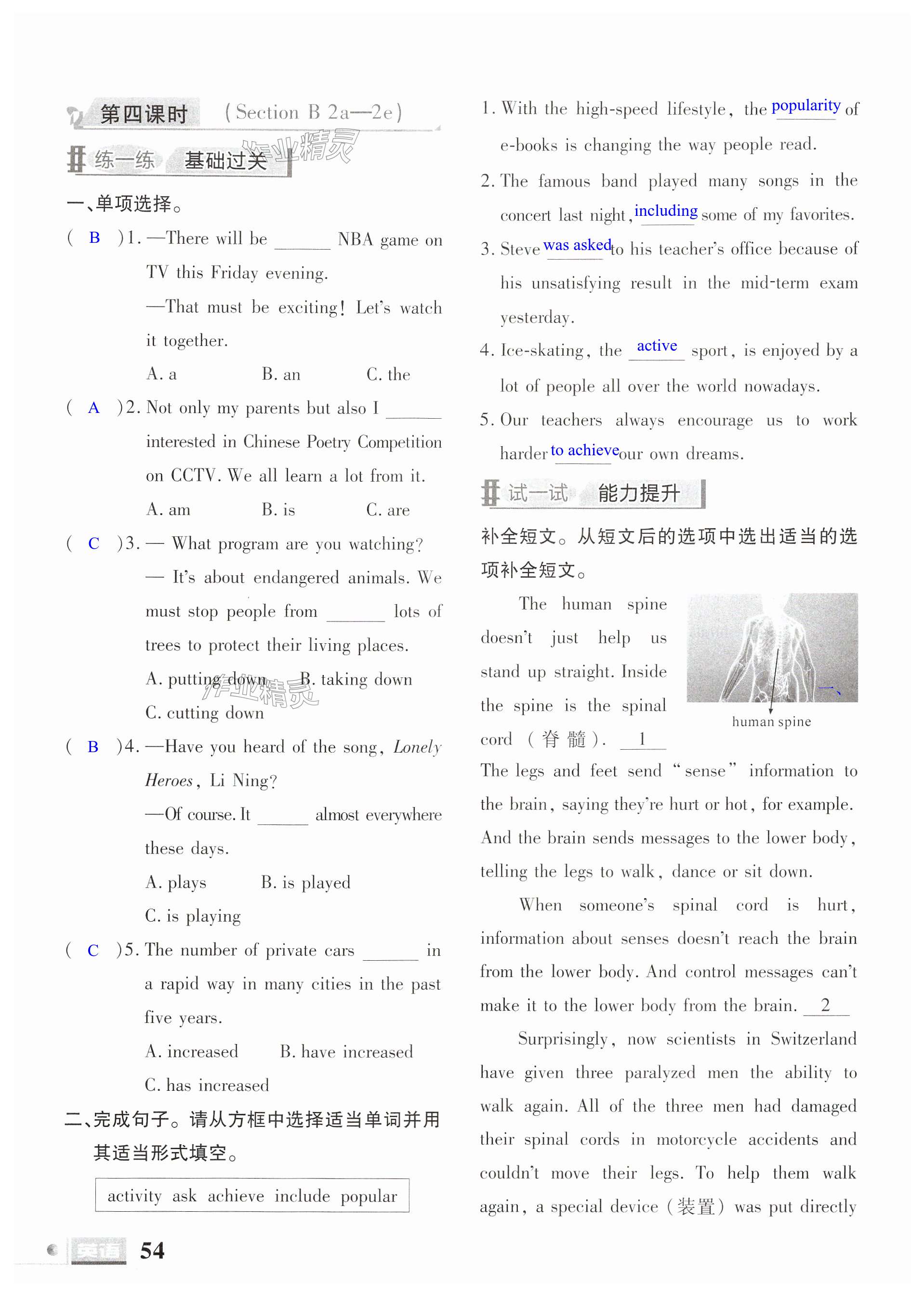 注:目前有些书本章节名称可能整理的还不是很完善,但都是按照顺序排列的,请同学们按照顺序仔细查找。练习册 2024年文科爱好者九年级英语全一册人教版 答案主要是用来给同学们做完题方便对答案用的,请勿直接抄袭。